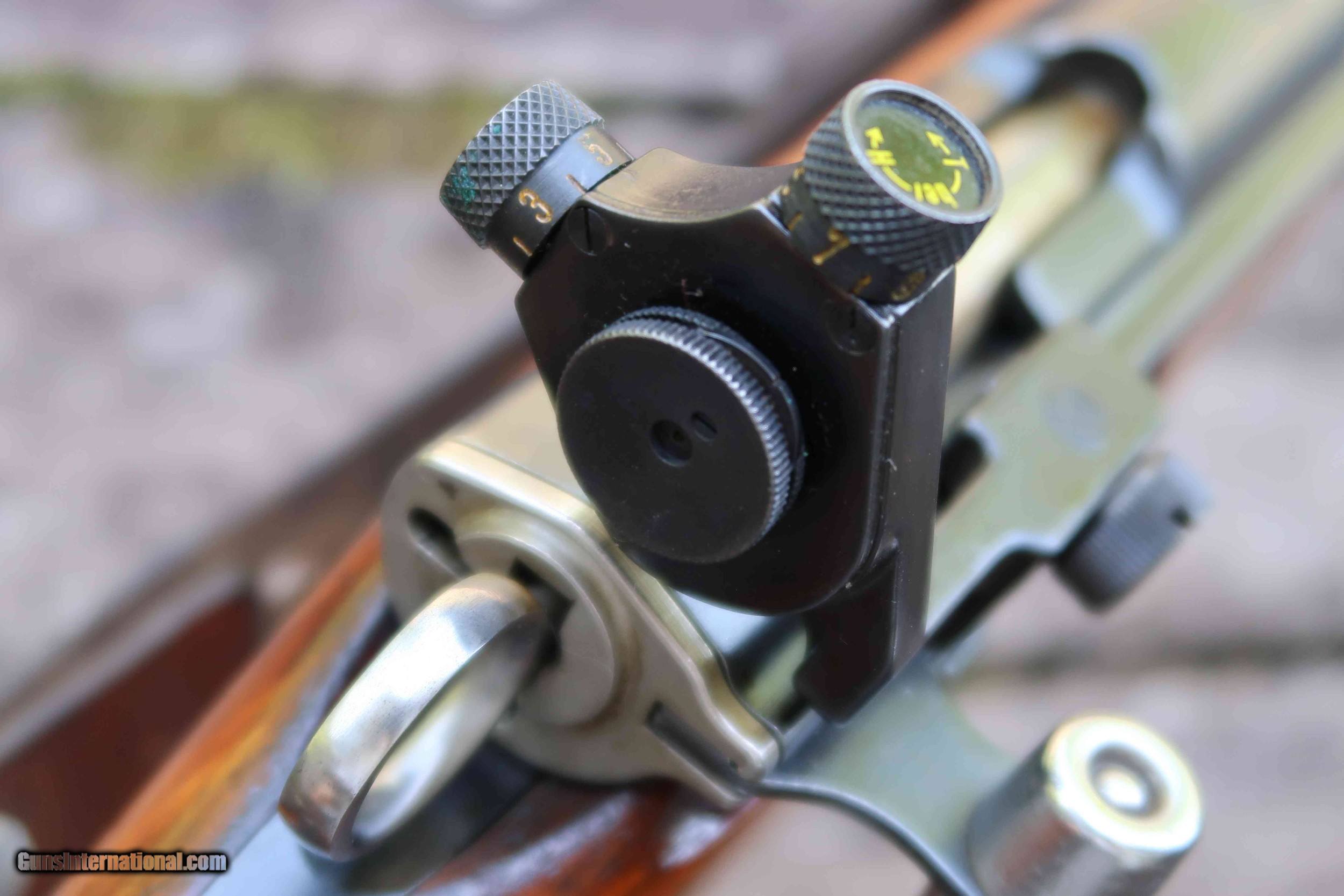 Description: Description: Standard configuration, matching, K31 rifle, circa 1948, with tangent rear sight graduated 1-15, straight pull bolt, detachable magazine, and metal buttplate. The left side of receiver, marked 915201. The last three digits of the serial number are repeated on the barrel. The full serial number is on the bolt and bottom of the magazine. Not disassembled. This rifle is fitted with best quality WF detachable diopter rear sight that can be attached to the receiver without modification. Detachable Bern logo globe front sight with post insert. Leather covers for both front and rear sights. Medium walnut stock, likely revarnished as military acceptance on right side is faint and under the varnish. Military accepted but undated sling. Not import marked. Synopsis: Swiss Bern K31 fitted with, Bern target front and rear diopter sight, matching, military sling. Condition: Near excellent with major components retaining their original rust blue stock with scattered dings and handling marks, likely revarnished. Mirror bright bore. Perfect manual mechanics. A classic Swiss military rifle, with added, detachable sights, target sights, whose removal allows reversion to the original military configuration. Buyer pays $85 shipping cost for insured FedEx shipping! We get you your guns FAST! SOLD Rifle Caliber: 7.5x55mm Swiss Manufacturer: Bern Model: K31 Serial Number: 915201 |
