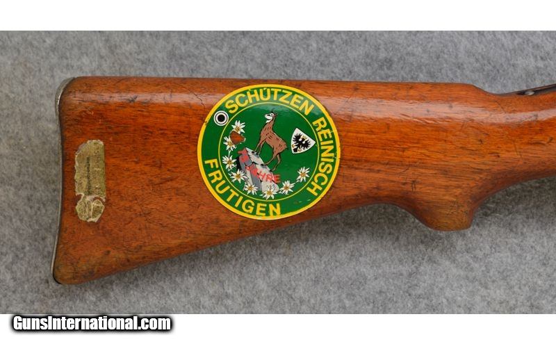 Description: Very good condition overall with handling wear. Has a 6 round capacity magazine. 7.5x55mm SOLD Curio/Relic: Yes Caliber Info: 7.5x55mm Metal Condition: Very Good Wood Condition: Very Good Barrels: 25.7 Triggers: Double Stage Military Style Trigger Stock Dimensions: LOP: 12 5/8 Fore End: Wood Military Style Fore Arm Butt Pad: Steel Butt Plate Sights: 1500 Meter Adjustable Rear Sight with a Blade Front Sight Item Location: Hamburg, PA |