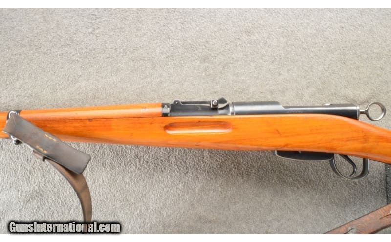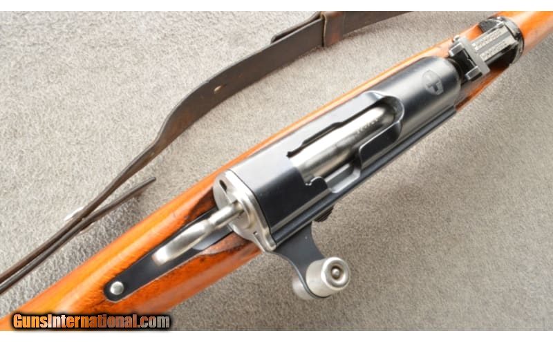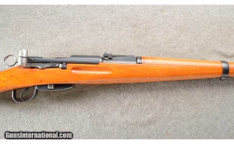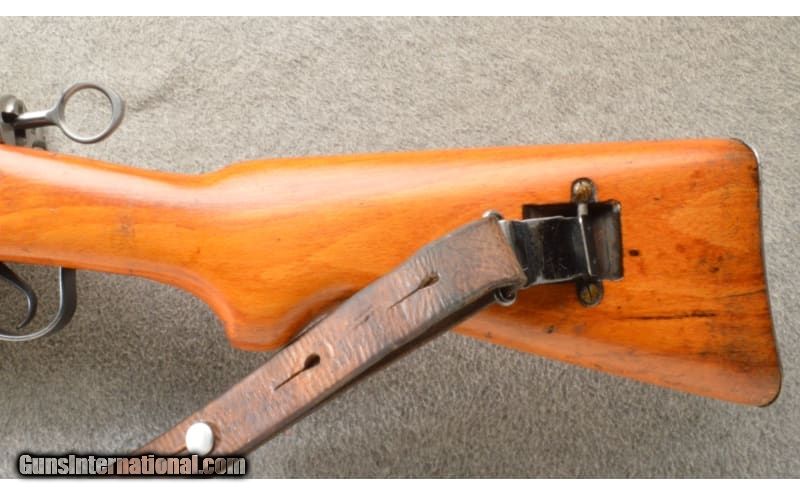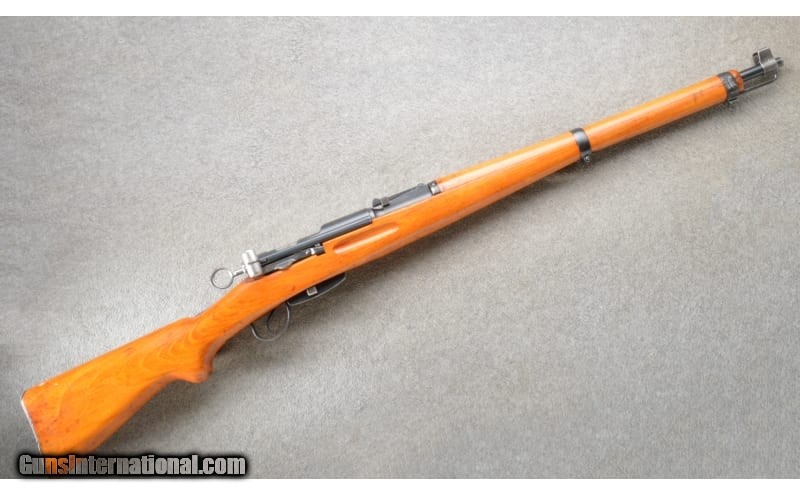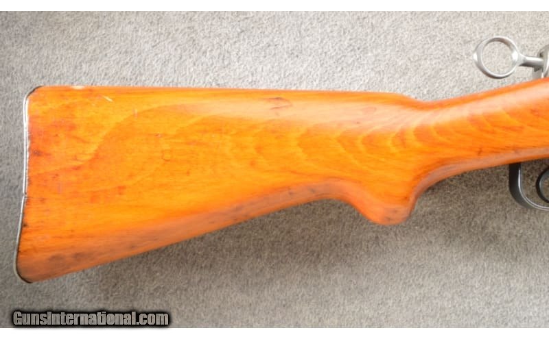 Description: Karabiner Model 1931 chambered in 7.5 mm Swiss with a 25.5" barrel. The Karabiner Model 1931 (K31) is a 6 round magazine-fed, straight-pull bolt action rifle. It was the standard issue rifle of the Swiss armed forces from 1933 until 1958. This one was manufactured in 1946 with a Serial Number: 874946. The front sight is an adjustable blade with wings, the rear sight is an adjustable tangent-leaf graduated to1500 meters. Has not been checked for the ID tag under the butt plate. Comes with a 1946 leather sling. 7.5x55mm Swiss SOLD Curio/Relic: Yes Chambers: 6+1 bolt action. Metal Condition: "Very good with thinning finish on the barrel, muzzle with high edge wear. Wood Condition: "Scattered surface marks, ""Light dings with dents"". Bore Condition: Excellent bright strong bore. Barrels: 25.5" barrel. Triggers: Single. Fore End: Smooth. Butt Pad: Metal. Weight: 9 LBS Sights: Adjustable blade and adjustable tangent-leaf. Item Location: Owatonna, MN |