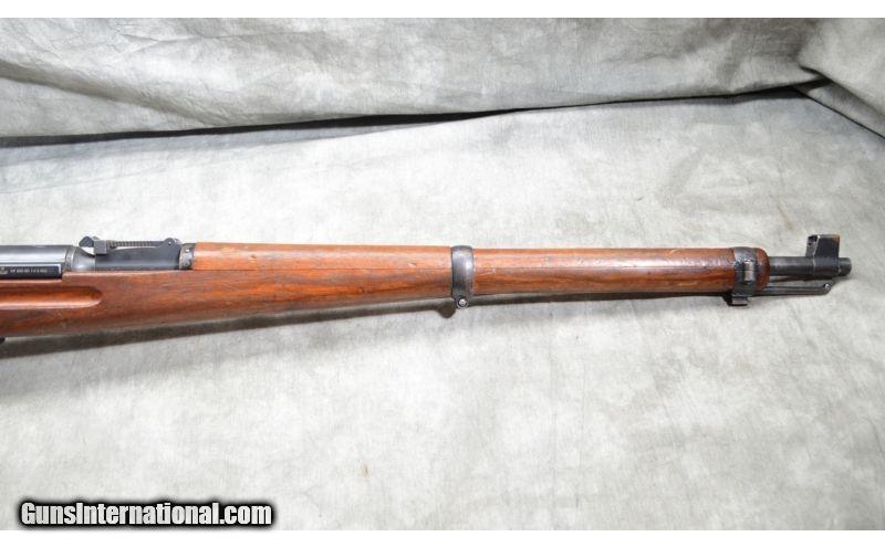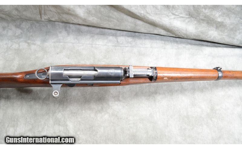 Description: The Swiss K31 battle rifle features carbine length full beechwood stock, a straight-pull bolt, two-stage military trigger, guarded post and ladder style combat sights and it has a nice beechwood stock. The S/N's on the receiver, the bolt, and the barrel match. SOLD Caliber Info: 7.5x55mm Swiss Chambers: 6 round detachable magazine. Metal Condition: Very good to excellent. There may be a few handling marks but not noticeable. All stampings are sharp and clean. Firearm and bolt s/n's match. Wood Condition: Very good to excellent with minimal wear. It appears to have the original shellac finish. Bore Condition: A little dark but shiny and good rifling. Barrels: 24 inch barrel with combat sights. Triggers: Two stage military trigger. Stock: Beechwood military stock. Stock Dimensions: 12 - 1/2 inch LOP. Fore End: Beech heat shield. Butt Pad: Curved steel plate. Weight: 9 lb. Sights: Guarded post and ladder style notch combat style sights. Extras: Box and one magazine. Item Location: Rogers,, MN |