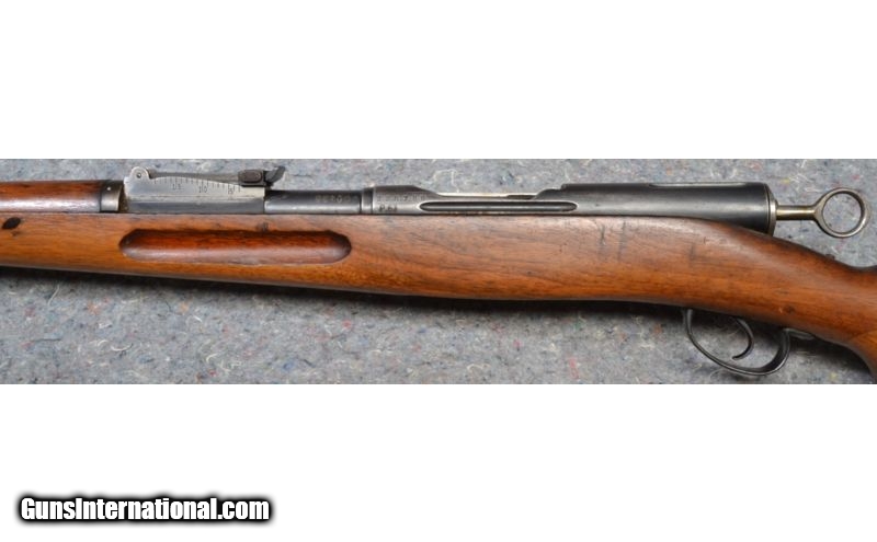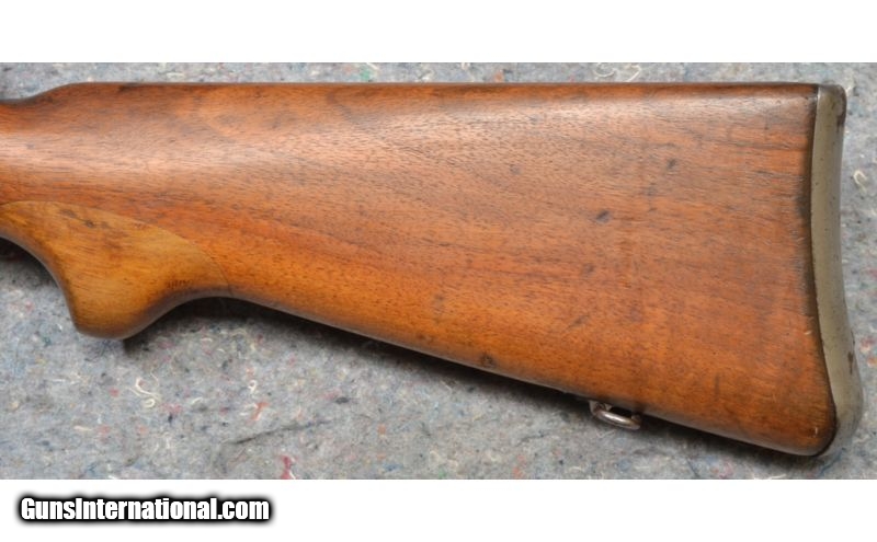 Description: This is a swiss made straight pull rifle chambered in 7.5x55MMS. It has adjustable iron sights, 31" blued steel barrel and a detachable magazine. This rifle is in overall good condition with main signs of use found in the barrel. SOLD Curio/Relic: Yes Caliber Info: 7.5x55MMS Metal Condition: Good with some signs of use Wood Condition: Good to very good with minor signs of use Bore Condition: Dull with signs of use throughout Barrels: 31" Blued steel barrel Triggers: Single stage trigger Stock: Walnut wood stock Stock Dimensions: 13" LOP Fore End: Wood stock fore end Butt Pad: Curved steel buttplate Weight: 9lbs 11oz Sights: Adjustable iron sights Item Location: Hoffman Estates, IL |
