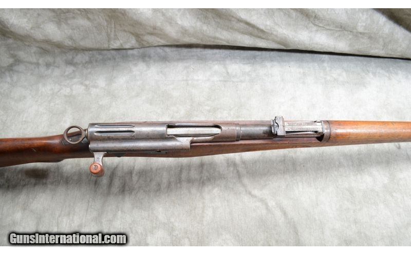 Description: The famous straight-pull Swiss main battle rifle. 7.5x55 Swiss SOLD Curio/Relic: Yes Chambers: 8 Metal Condition: Good. Wood Condition: Good. Bore Condition: Shiny with good rifling. Barrels: 30 inch. Triggers: Factory trigger. Stock Dimensions: 12-1/2 inch LOP. Fore End: Military full-length hardwood with wooden heat shield. Butt Pad: Curved steel plate. Weight: 9 lb. - 7 oz. Sights: Military post and ladder style notch. Item Location: Rogers |