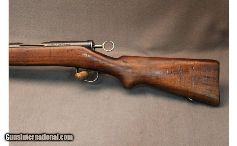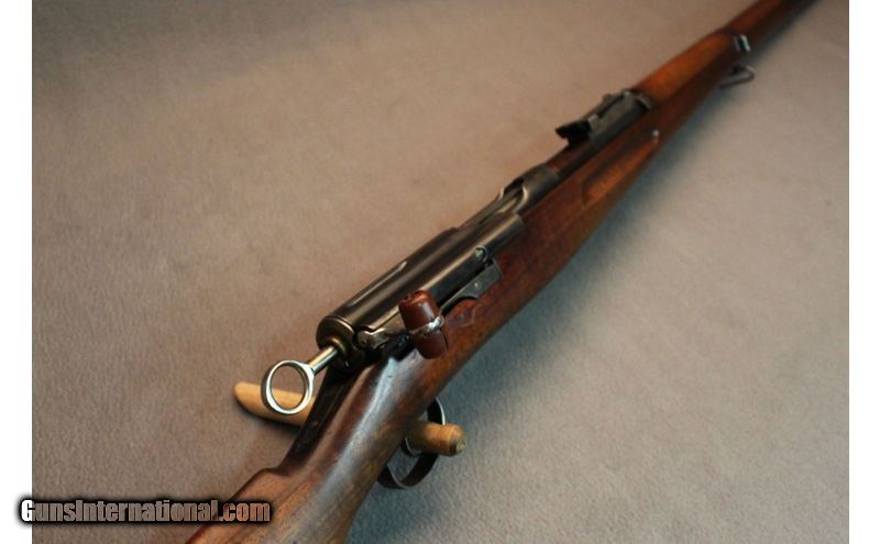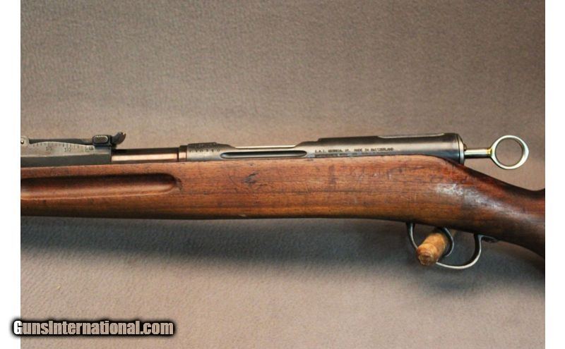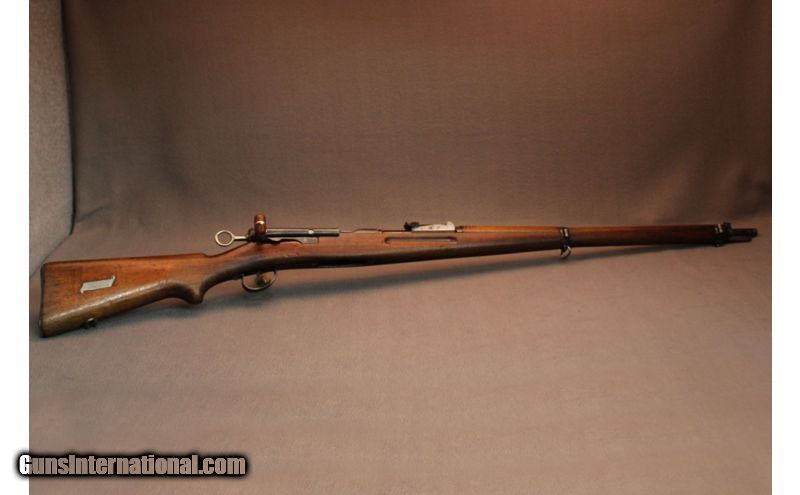 Description: The groundbreaking redesign of the Schmidt rifle was primarily driven by the desire to adopt the powerful new Model 1911 cartridge for infantry use. In addition to modernizing their old rifles, in 1913, the Model 1911 was formally adopted. These rifles, along with those converted to the new pattern, fired the new GP11 round. The GP11 round fired a 175 grain round at 2640 fps a major advancement in its day requiring significant strengthening of the receiver and materials. The 1911 possessed all the improvements listed above. 127,000 1911 Rifles were produced from 1913 to 1919. Outward changes to the Model 1911 included a new stock with a pronounced pistol grip, a six round magazine that did not interfere with firing from the prone position. 7.5x55mm Swiss. SOLD Chambers: Straight-pull bolt action. Metal Condition: "Good, with minor signs of use. Wood Condition: "Good, with minor signs of use. Barrels: 30 1/2 Inch free floating barrel. Triggers: Single. Fore End: Wood. Butt Pad: Metal butt plate. Sights: Tangent-leaf sight graduated to 2000m. Item Location: East Grand Forks, MN |