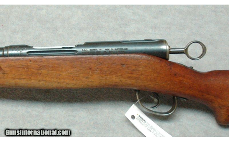 Description: Waffenfabrik Bern G1911 7.5x55mm Swiss. The groundbreaking redesign of the Schmidt rifle was primarily driven by the desire to adopt the powerful new Model 1911 cartridge for infantry use. In addition to modernizing their old rifles, in 1913, the Model 1911 was formally adopted. These rifles, along with those converted to the new pattern, fired the new GP11 round. The GP11 round fired a 175 grain round at 2640 fps a major advancement in its day requiring significant strengthening of the receiver and materials. The 1911 possessed all the improvements listed above. 127,000 1911 Rifles were produced from 1913 to 1919. Outward changes to the Model 1911 included a new stock with a pronounced pistol grip, a six round magazine that did not interfere with firing from the prone position. SOLD Curio/Relic: Yes Caliber Info: 7.5x55mm Swiss. Chambers: Bolt action. Metal Condition: Very good, some finish wear, small nicks and scratches. Wood Condition: Stock is in good condition, shows some battle wear. Bore Condition: Bright. Barrels: 30" Barrel. Triggers: Factory trigger. Stock: Original type wood stock. Fore End: Wood handguards. Butt Pad: Metal butt plate. Weight: 9 Lbs. Sights: Tangent sight. Extras: With one mag. Item Location: La Vista, NE |