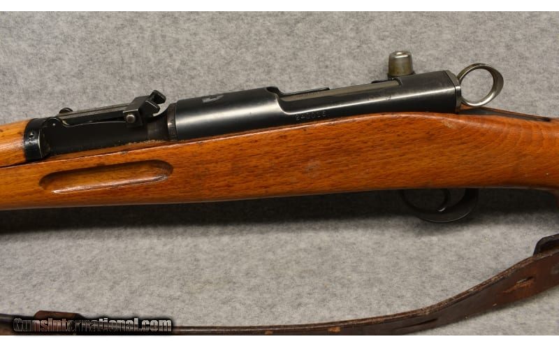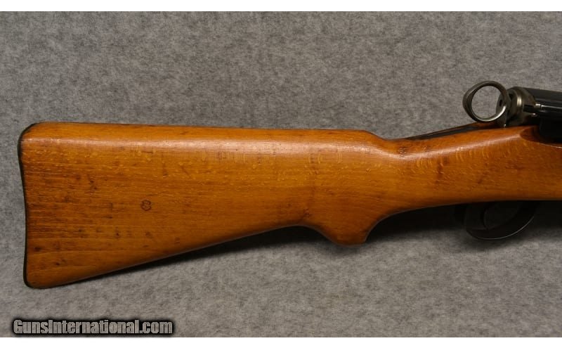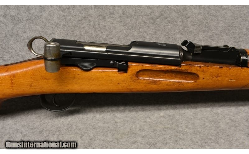 Description: This Waffenfabrik Bern Kal. 31 7.5x55mm Swiss is in very good condition for its age. SN 240016 These were first manufactured in 1933, and the metal shows some mild surface rust on top of the receiver. The stock has normal wear for a gun this age and a repair was done on the bottom at the butt. A one inch by one inch plug was replaced skillfully. All numbers match on this gun including the magazine number. Very nice addition to any collection for a good price. 7.5x55mm Swiss SOLD Curio/Relic: Yes Chambers: 7.5 with 6 round magazine Metal Condition: Very Good Wood Condition: Very Good Bore Condition: Very Good Barrels: 25 Fore End: Wood Butt Pad: Metal Weight: 8 Sights: Adjustable Front and Rear Item Location: Kansas City, KS |