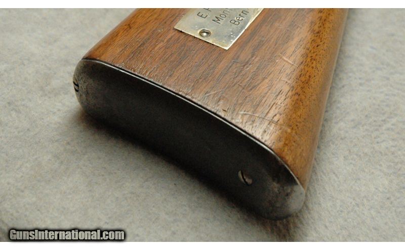 Description: Waffenfabrik Bern K11 - the Schmidt Rubin Model 1889/96 was the replacement for the 1889. The biggest change was moving the locking lugs from the rear of the bolt sleeve to the front of the bolt sleeve. This allowed the receiver to be shortened by a small amount. In addition the change allowed the bolt and receiver to handle more pressure. When the cartridge was modified in 1908 to increase the velocity of the bullet the 1896 bolt system was used. Almost all the model 89/96 rifles were converted to 96/11. Only a few remain in the original configuration and almost all of those are private series rifles that were never military issue. This one has matching number on receiver, bolt, magazine and barrel, different numbers on rear sight and butt pad. 7.5×55mm. SOLD Curio/Relic: Yes Chambers: Bolt action. Metal Condition: Good, some battle wear, small nicks and scratches. Wood Condition: Stock is in very good condition. Barrels: 26" Barrel. Triggers: Standard military trigger. Stock Dimensions: 12 1/2" LOP. Fore End: Wood handguards. Butt Pad: Metal butt plate. Sights: Adjustable military iron sights. Item Location: La Vista, NE |