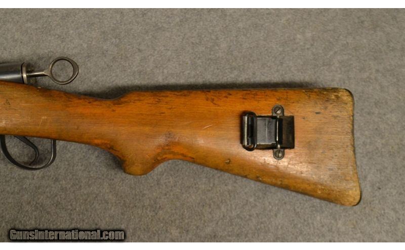 Description: The Karabiner Model 1931 (K31) is a magazine-fed, straight-pull bolt action rifle. It was the standard issue rifle of the Swiss armed forces from 1933 until 1958 though examples remained in service into the 1970s. It has a 6-round removable magazine, and is chambered for the 7.5×55mm Swiss Gewehrpatrone 1911 or GP 11. Rifle includes a 6-round detachable box magazine with matching stamped serial number. Small cartouche on right side of buttstock. 7.5 X 55mm Swiss SOLD Curio/Relic: Yes Chambers: 7.5×55mm Swiss Wood Condition: Some scratches Barrels: 26 Butt Pad: Metal butt plate Item Location: Greenville, SC |