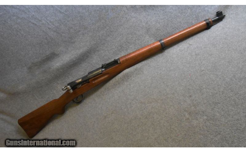 Description: Waffenfabrik Bern K31 7.5x55mm Swiss. Straight pull bolt action, matching serial number 6 round magazine. SOLD Caliber Info: 7.5x55mm Swiss. Chambers: Straight pull bolt action. Metal Condition: Very good, bluing worn off in various areas. Wood Condition: Very good, some scratches and dings. Bore Condition: Bright, strong rifling. Barrels: 25 inch blued with sights. Triggers: Two staged trigger. Stock: Smooth, Prince of Wales style, wood. Stock Dimensions: 12 1/2 inch LOP Fore End: Smooth, straight, wood, finger grooved. Butt Pad: Metal plate. Weight: 9 lbs 5 oz. Sights: Adjustable front sight post, tangent rear iron open sights. Extras: Comes with magazine. Item Location: Kansas City, KS |