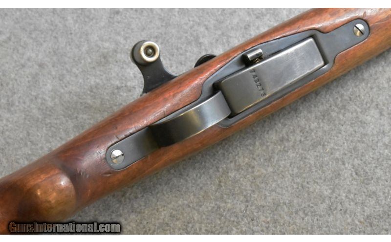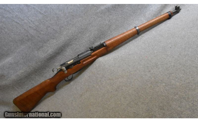 Description: Waffenfabrik Bern K31 7.5x55mm Swiss. Straight pull bolt action, matching serial number 6 round magazine. SOLD Caliber Info: 7.5x55mm Swiss Chambers: Bolt-action. Metal Condition: Very good, bluing worn off in various areas. Wood Condition: Very good, some scratches and dings. Bore Condition: Bright lands, strong rifling. Barrels: 25 inch blued with sights. Triggers: Two stage trigger. Stock: Smooth, wood, Prince of Wales style. Stock Dimensions: 12 1/2 inch LOP. Fore End: Straight, smooth, wood. Butt Pad: Metal plate. Weight: 9 lbs 5 oz. Sights: Front sight post, tangent rear iron open sights. Item Location: Kansas City, KS |