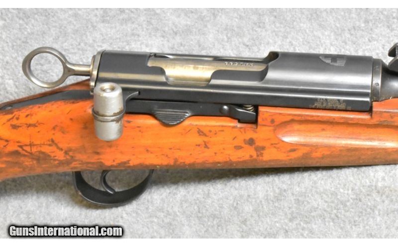 Description: Waffenfabrik Bern K31 7.5x55mm Swiss. Straight pull bolt action, matching serial number 6 round magazine. SOLD Curio/Relic: Yes Caliber Info: 7.5x55mm Swiss. Metal Condition: Very good, handling wear and bluing worn in various areas. Wood Condition: Good, some dings and scratches throughout, a few minor chips at the toe. Bore Condition: Strong rifling. Barrels: 25 inch blued with sights. Triggers: Two stage trigger. Stock: Smooth, wood, Prince of Wales style. Stock Dimensions: 12 1/2 inch LOP. Fore End: Smooth, straight, wood. Butt Pad: Metal plate. Weight: 9 lbs 5 oz. Sights: Front sight post, tangent rear iron open sights. Item Location: Kansas City, KS |
