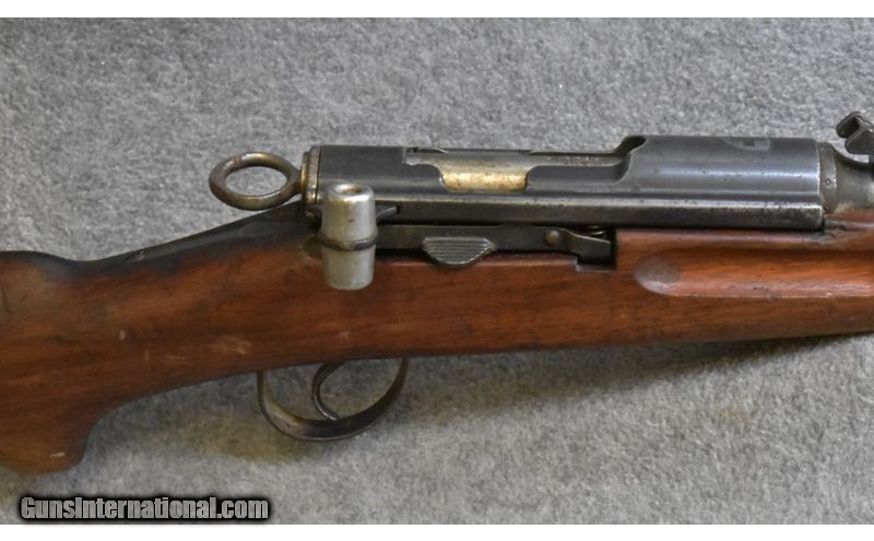 Description: Waffenfabrik Bern K31 7.5x55mm Swiss. Straight pull bolt action, matching serial number 6 round magazine. SOLD Chambers: Straight pull bolt action. Metal Condition: Good to fair, rust in various areas. Wood Condition: Very good, some scratches and dings. Barrels: 25 inch blued with sights. Triggers: Two staged trigger. Stock Dimensions: 12 1/2 inch LOP. Fore End: Finger grooved, wood, straight, smooth. Butt Pad: Metal plate. Sights: Adjustable front sight post, tangent rear iron open sights. Item Location: Kansas City, KS |