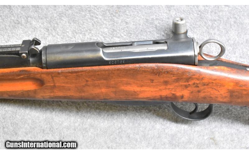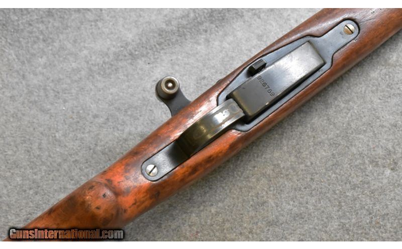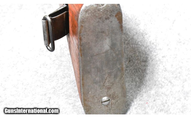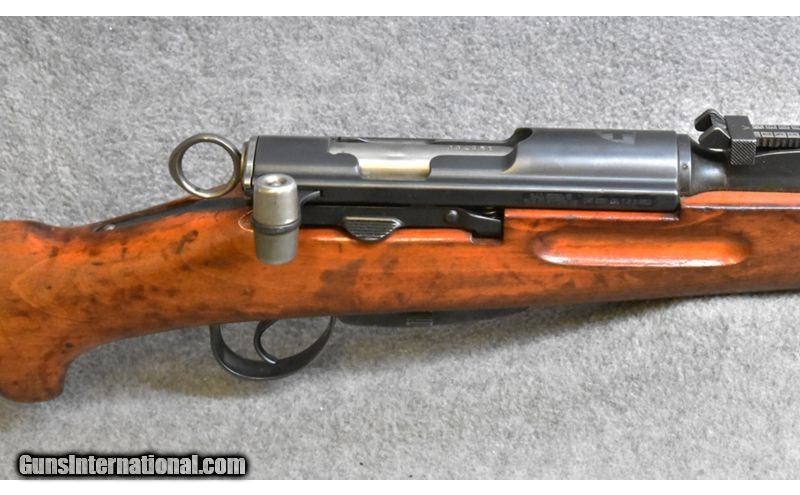 Description: Waffenfabrik Bern K31 7.5x55mm Swiss. Straight pull bolt action, matching serial number 6 round magazine. 7.5x55mm Swiss SOLD Curio/Relic: Yes Metal Condition: Very good to good, some pitting in butt plate, bluing worn in various places. Wood Condition: Very good, a few scratches and marks. Barrels: 25 inch. Triggers: Two stage trigger. Stock Dimensions: 12 1/2 inch LOP. Fore End: Smooth, straight, finger grooved, wood. Butt Pad: Metal plate. Sights: Front sight post, tangent rear iron open sights. Item Location: Kansas City, KS |