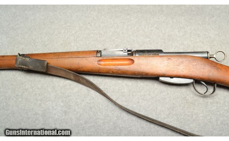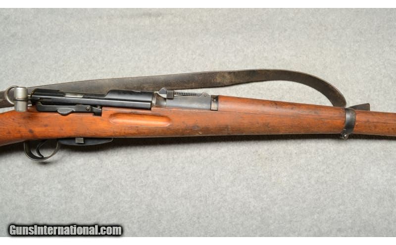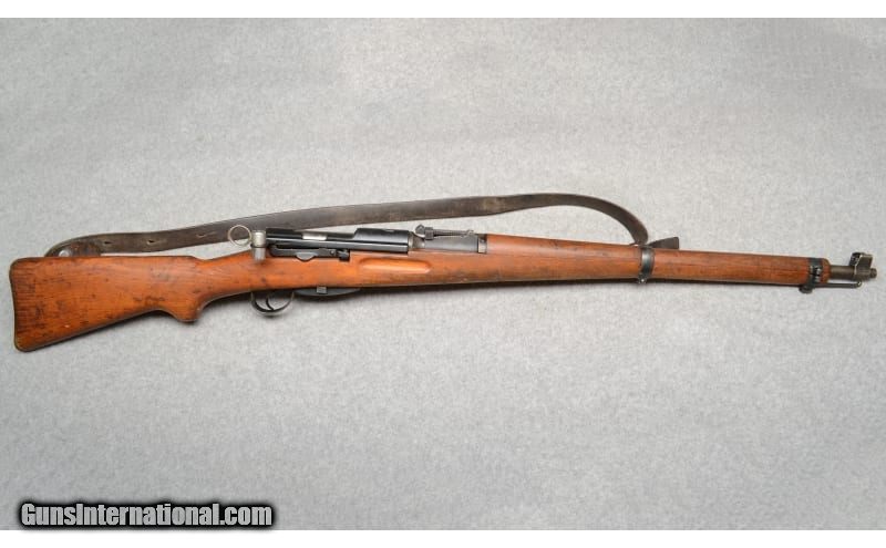 Description: The Waffenfabrik Bern K31 is a magazine-fed, straight-pull bolt-action rifle. It was the standard-issue rifle of the Swiss armed forces from 1933 until 1958 though examples remained in service into the 1970s. It has a 6-round removable magazine, and is chambered for the 7.5×55mm Swiss, a cartridge with ballistic qualities similar to the 7.62×51mm NATO/.308 Winchester cartridge. Each rifle included a 6-round detachable box magazine with matching stamped serial number. A stripper clip can be used to load the magazine from the top of the receiver. 7.5x55MMS SOLD Metal Condition: Fair Wood Condition: Fair Bore Condition: Good Barrels: 25 Triggers: Factory Weight: 6 lbs Sights: Factory Item Location: Columbus, OH |