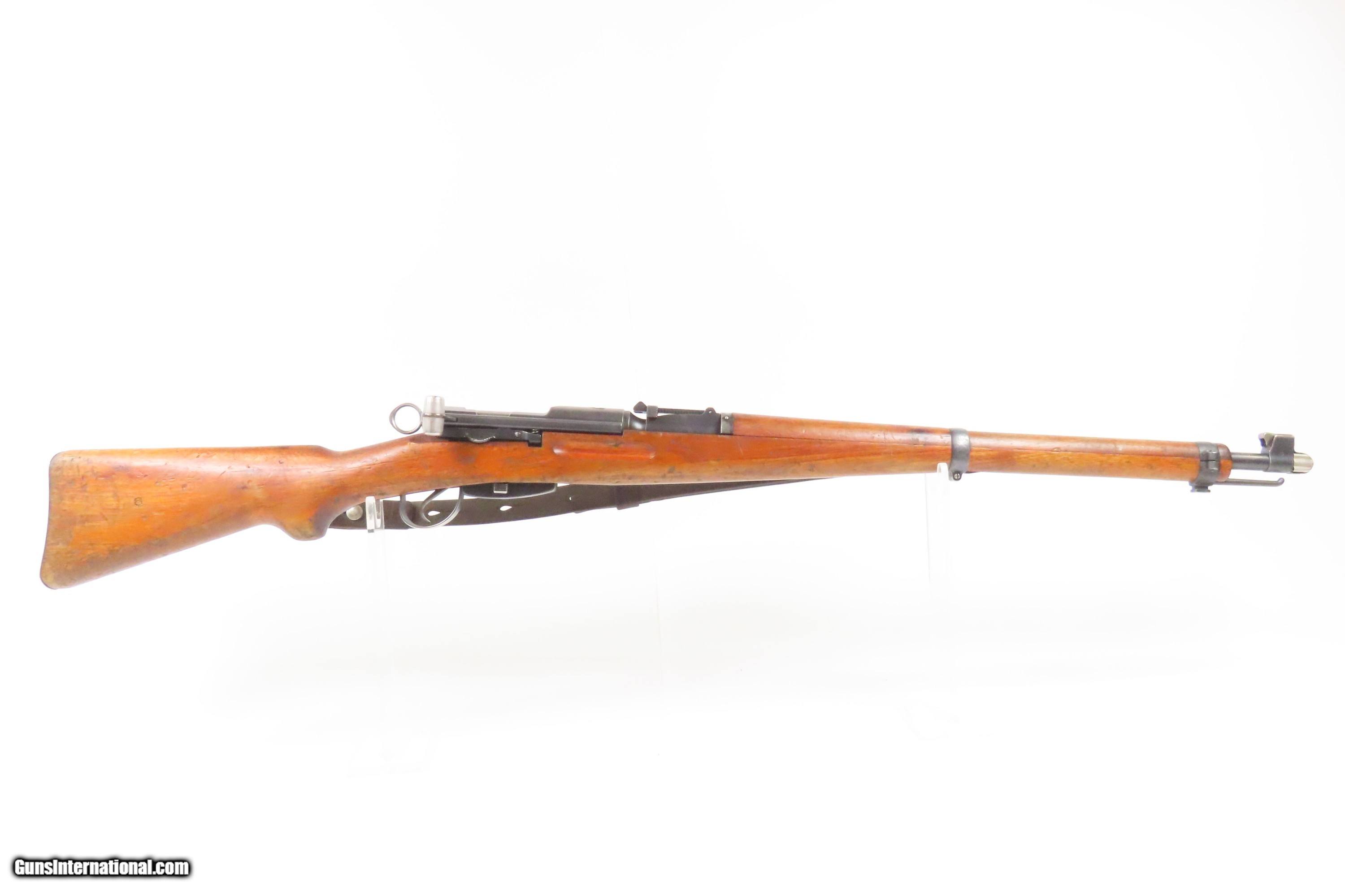 Description: Waffenfabrik Bern SWISS K31 STRAIGHT PULL Bolt Action 7.5mm C&R Rifle SLING MILITARY RIFLE w/SLING & METAL MUZZLE COVER Here we present a C&R Swiss Model K31 Straight Pull Bolt Action Rifle, made circa the mid-1940s by Waffenfabrik Bern in Bern, Switzerland. The design was conceived under the direction of Colonel Adolf Furrer and was adopted in 1931, hence the designation. More than 580,000 K31 rifles were made between 1933 and 1958, and many stayed in reserve store until the 1990s. They have a reputation among shooters for being very precise, reliable, and accurate, with the ability to fire quickly. One of the most unique and differentiating features of the K31 is the straight pull bolt with the “beer keg” bolt handle. Instead of unlocking the bolt by pivoting the bolt by its handle, the shooter simply pulls straight back on the handle. The muzzle is crowned, contributing to accuracy. The front sight is a straight blade and the rear a long-range leaf. A unique element found with some rifles is a piece of paper under the buttplate with the name and address of the last citizen/soldier to whom the rifle was issued. The overall condition is nearing fine. Original finish. Strong action. The bore is bright with rifling. Markings are legible. Numbers match. Import marked receiver. Good leather sling. This example sports a solid stock with an average amount of dings and bumps. Here is a fantastic Swiss rifle that promises to be as good a shooter as it is reputed to be. Own the original! This firearm is classified as a Curio & Relic. Barrel is 25-1/2 inches. Caliber: 7.5mm Swiss Overall condition as seen in photos. Very Fast. Very Safe. FREE SHIPPING. Will need to be sent to your local FFL or C&R licensee. This firearm is classified as a Curio & Relic. Guaranteed AUTHENTIC & Includes CERTIFICATE OF AUTHENTICITY. ancestryguns $1500 #247031 SOLD Curio/Relic: Yes |