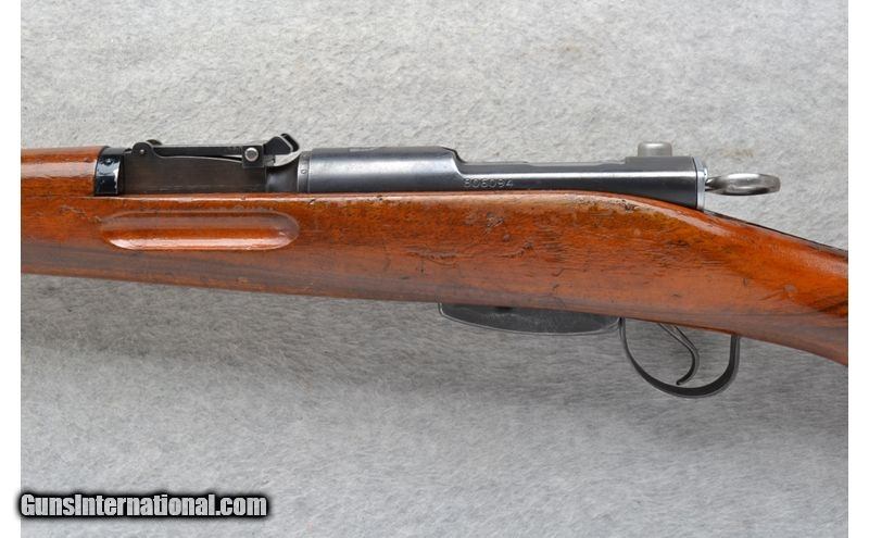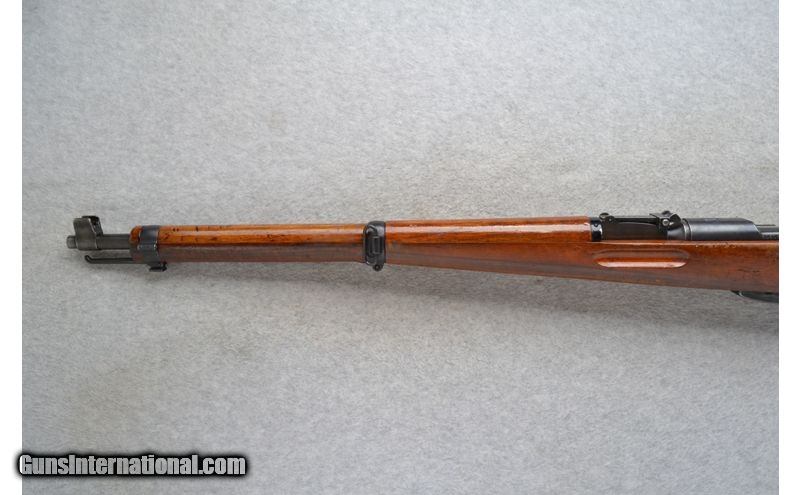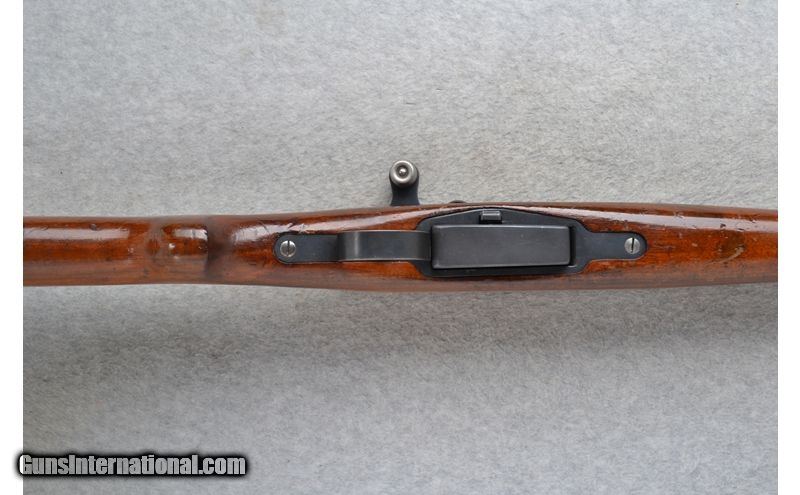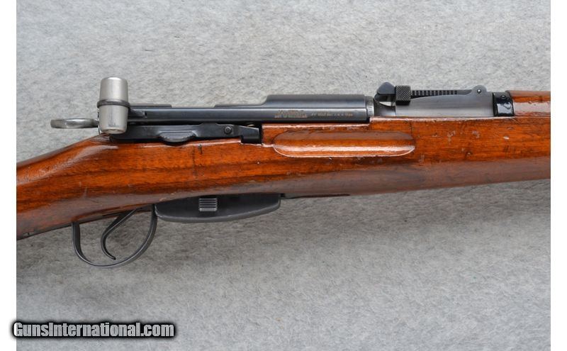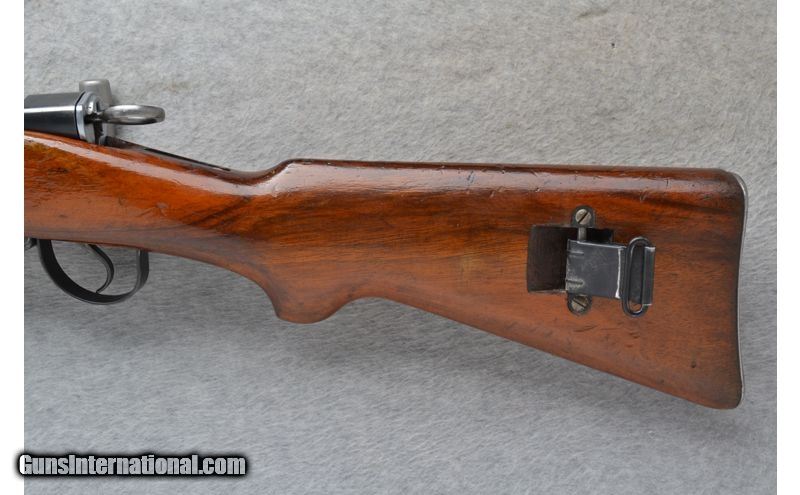Description: This Waffenfabrik Model K31 is a Swiss Karabiner right hand straight pull bolt action rifle in 7.5x55mm Swiss Cal. It has a 25.7 inch barrel with adjustable front and middle iron sights. The stock is a smooth walnut pistol grip. It has a two stage trigger. It was a standard issue rifle of the Swiss armed forces from 1933 until 1958. This is a great recreational rifle used for target shooting matches. 7.5x55mm Swiss SOLD Curio/Relic: Yes Chambers: Bolt Action 6+1 detachable magazine. Metal Condition: Very good. Light blue wear. Wood Condition: Good. Has multiple handling marks. Some light wear. Has been refinished. Barrels: 25.7 inches. Triggers: Two stage. Stock Dimensions: LOP 12 5/8 inches. Fore End: Smooth two piece walnut with finger grooves and two bands. Butt Pad: Smooth steel. Sights: Adjustable blade front with protective sides. Adjustable Tangent middle. Item Location: Richfield, WI |