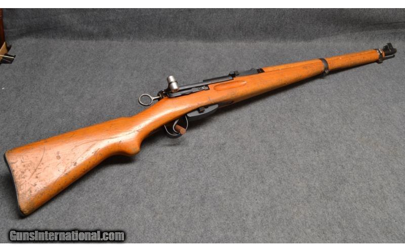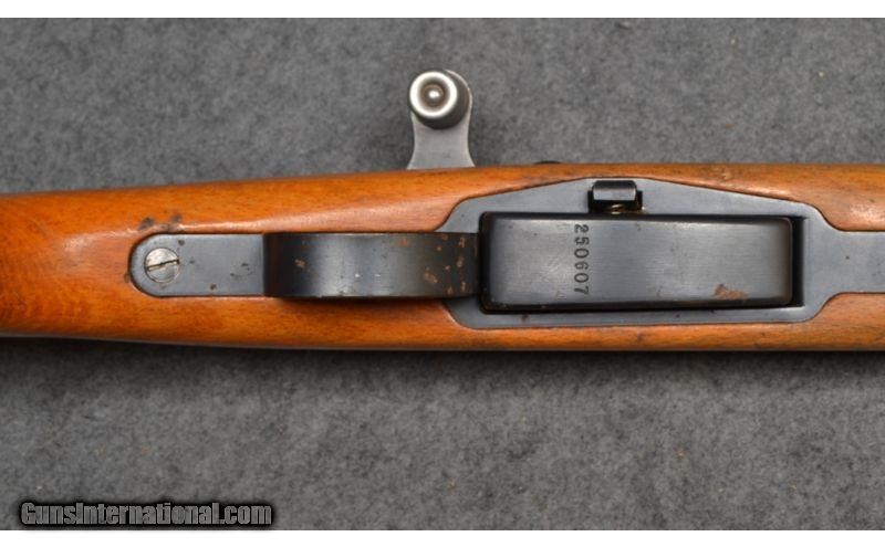 Description: This straight-pull bolt action rifle is a Waffenfabrik K31, chambered in 7.5x55mm. It has a 20" blued steel barrel, an adjustable rear iron sight with a fixed front sight, and beech wood furniture. This Waffenfabrik K31 is in poor condition with many signs of wear and use throughout. SOLD Caliber Info: 7.5x55mm. Chambers: Straight-pull bolt-action rifle. Metal Condition: Poor. Many signs of use and wear. Wood Condition: Poor. Many signs of use and wear. Bore Condition: Good. Barrels: 20" blued steel barrel. Triggers: Single metal trigger. Stock: Beech wood stock. Stock Dimensions: 12-1/2" LOP. Fore End: Beech wood furniture. Butt Pad: Metal butt plate. Weight: 9lbs. Sights: Adjustable rear sight with fixed front sight. Item Location: Wichita, KS |