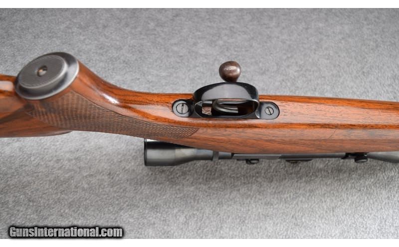 Description: This action was manufactured in Oberndorf Germany as a Mauser. Custom stock and barrel were added by an unknown gunsmith. Bi-color Walnut stock is beautifully figured and shows only light use marks with a coat of finish that shows light wear in spots. Blue is excellent but has faded some on receiver with bolt turning a bright plum color. This is a Controlled Round Feed action with an excellent bore! Complete with period Weaver Micro Trac scope in Weaver rings on a receiver mounted Picatinny rail. Beautiful gun in popular .243 Win. .243 Winchester SOLD Metal Condition: Very Good Wood Condition: Very Good Bore Condition: Excellent Barrels: 21" Tapered Triggers: Factory (3 1/2" LB Trigger Pull) Stock Dimensions: 13 1/8" LOP Fore End: Checkered Walnut Pistol Grip with Checkered Metal Pistol Grip Cap - Checkered Walnut Forend Butt Pad: Vented Red Rubber Butt Pad Weight: 7 lbs Sights: Weaver Micro Trac Scope in Weaver Rings on Receiver Mounted Picatinny Rail Item Location: Wheeling |