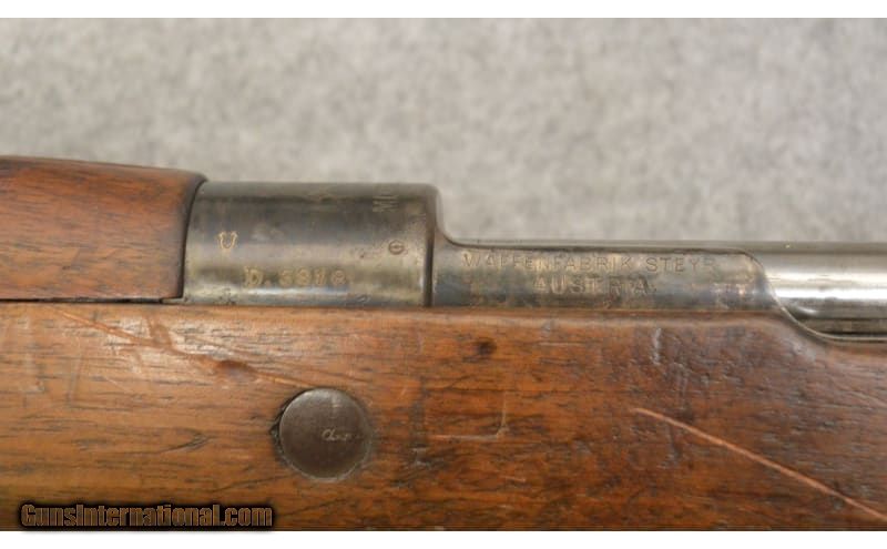 Description: The Steyr Model 1912 were Gewehr 98 pattern bolt-action battle rifles produced by Steyr before World War I. They were designed for export market. During the war, they were also used by the Austro-Hungarian Army. This rifle is in excellent condition for its age. 7x57 Mauser SOLD Curio/Relic: Yes Chambers: 7 X 57 MM Mauser Metal Condition: Excellent Wood Condition: Good Bore Condition: Bright and shiny Barrels: 30" barrel Triggers: Crisp Stock Dimensions: 12" stock Fore End: 23" fore end Butt Pad: Metal butt pad Weight: 2 lbs 5 oz Sights: Iron sights Item Location: Huntsville, AL |