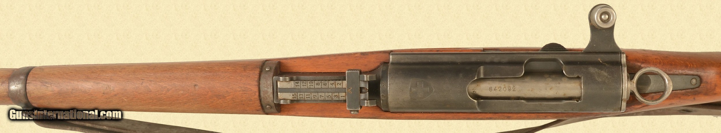 Description: 7.5mm, 80% blue, very good+ bore, good stock, 25.7'' barrel , This is a number matching K-31 carbine. Manufactured in 1945. The front sight is a winged post with muzzle cap, and the rear sight is an elevation adjustable tangent. The bore is bright. It has a Swiss Cross over a Shield on top of the chamber. The metal has minor edge wear and thinning. The walnut stock is in fair condition with mild handling marks, dings moisture damage around the buttstock. The right-side buttstock has a Swiss Cross inside of a Shield stamped into the stock. Muzzle cap and sling that has white mold. Import marked., $575.00 Please call (309)342-5800 Tues-Fri, 10 am -6pm (CST), or Sat 1pm-6pm (CST), to speak with our sales team for further information, or to purchase firearms. FEDERAL FIREARMS LICENSE (FFL): is required on all shipments of modern guns. We must wait for a copy from your dealer before we can ship to them. We will also ship C&R eligible firearms to Curio and Relic (C&R) license holders. We accept your signed, legible FFL and C&R licenses via fax at 309/ 342-5730 (always on), email at FFLsimpsonltd or through the mail at Simpson Ltd; 140 S Seminary St; Galesburg, IL 61401. Pre-1898 firearms and non-firearms items are exempt from licensing requirements. All items shipped to an Illinois address will be charged 8.75% sales tax. NOTE: Because of recent shipping restrictions and charges placed on us by UPS and FedEx (handguns must ship via next day or 2nd day air and they have added a $10 surcharge for parcels over 48”. Our return policy lasts a maximum of 3 days from the time you receive your item. If 3 days have passed since you received your purchase, and we have not been contacted by you, unfortunately, we can’t offer you a refund or exchange. If you are not happy with your purchase, please contact us by phone and/or email to arrange for a return. Items must be shipped back to us to arrive with 7 days of notification of return. LAYAWAY POLICY: We are willing to put items on layaway for you under the following conditions: The item must be priced at $500 or more with a 20% minimum deposit and must be paid off within 30 days. You may have a maximum of 2 items on layaway at one time. If the balance is not paid off within the 30 day period, all deposits and payments will be forfeited and not returned or applied to another item. SOLD Curio/Relic: Yes |
