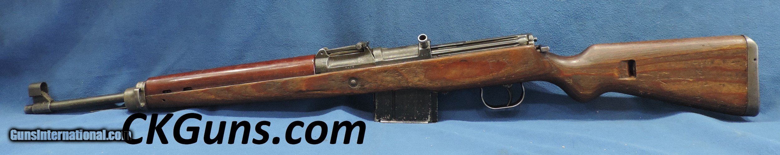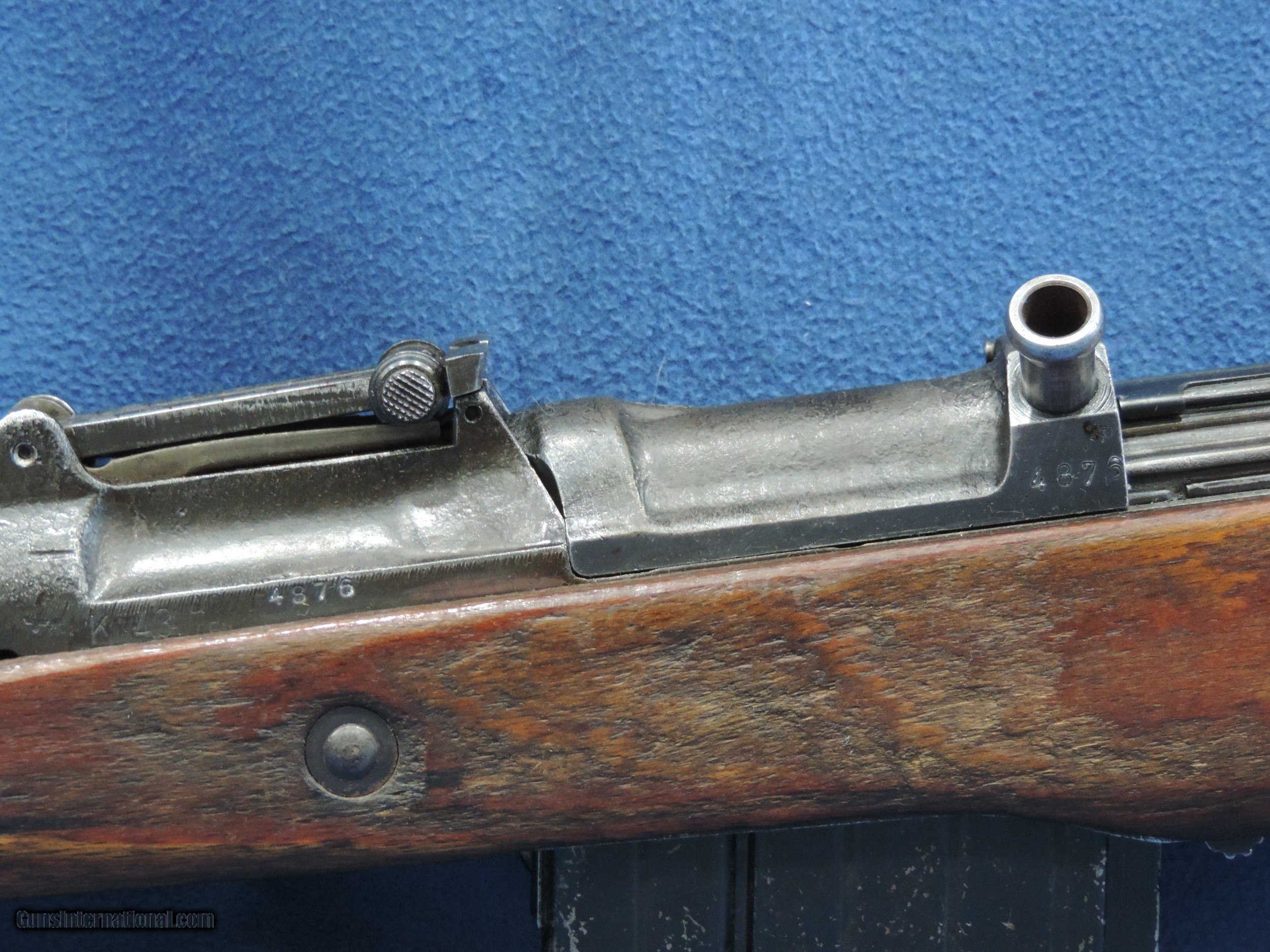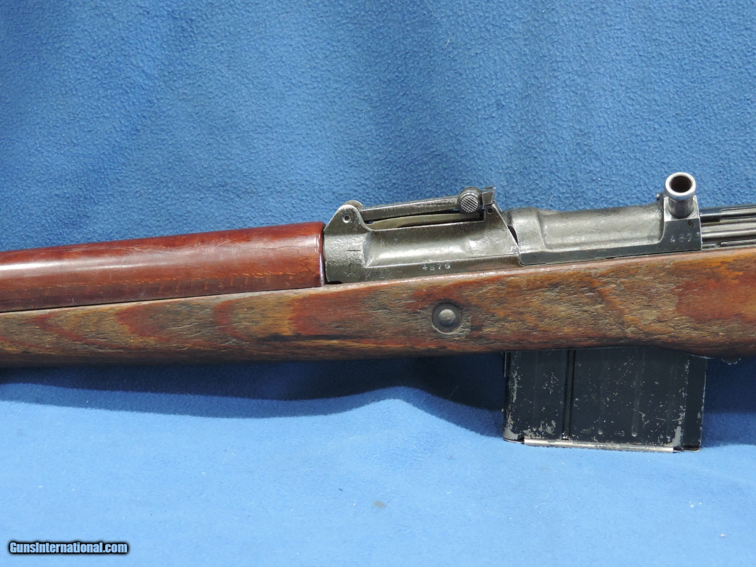 Description: INV. 8885 HITLER'S GARAND, WALTHER K-43 CAL 8MM, SER. 4876. THIS IS A GREAT EXAMPLE OF THE VERY LATE WAR K-43. THE CASTINGS ARE QUITE CRUDE AS THE FINISHES WERE RATHER POOR THEN. THIS GUN HAS RETAINED ABOUT 80% 0F THE ORIGINAL FINISH. ALL NUMBERS MATCH AND HAVE THE PROPER WAFFENAMTS. THE CORRECT LAMINATED WOODSTOCK AND HANDGUARD HAVE ABOUT 45% OF THE ORIGINAL LACQUER THE SURFACE ON THE LEFT SIDE SHOWS SOME SMALL AREA OF FLAKING BUT THAT IS UNDER THE LACQUER AND WAS PROBABLY CONSIDERED USABLE. THE LEFT SIDE ALSO HAS THE INITIALS "FA" LIGHTLY CARVED IN IT, THE RIGHT SIDE HAS AN "R" AND HIS FRAU'S NAME, "S.EMILIA". HOWEVER THER ARE NO SPLITS OR DINGS IN ANY OF THE WOODS PARTS.. THE BORE IS REALLY NICE, QUITE BRIGHT WITH SHARP WELL DEFINED RIFLING AND SOME LIGHT SCATTERED FROST. IT COMES WITH ONE PROPERLY MARKED K-43 STAMPED MAGAZINE, THIS IS A GREAT FIND FOR THE COLLECTOR, SHOOTER THAT DOESN'T WANT TO MORTGAGE THE FARM TO GET A NICE SHOOTING EXAMPLE OF "HITLER'S GARAND...MODESTLY PRICED ....$3495.*** ***100$ SATISFACTION GUARANTEED P. S. ADDITIONALLY YOU CAN UPGRADE IT TO THE VERY SCARCE SNIPER VERSION. WE ARE OFFERING A REPRO SCOPE MOUNT WITH AN ORIGINAL ZEISS SNIPER SCOPE.. IT IS STAMPED, ZFK 43, DOW /41603..IT IS IN REALLY FINE CONDITION. BRIGHT WITH PERFECT CROSS HAIRS..ONLY..... $1495 .. To purchase this firearm or if you want to request more information contact us at: Email ckguns[at]ymail[dot]com Phone 201-512-0002 Cell 201-575-6838 FAX 201-215-4759 We accept most major credit cards. Prices shown are Discounted 3% for Cash or Check. The buyer must be familiar with all the laws governing the purchase and the ownership of firearms in their own city and state. The Yankee Armorer, Inc is not responsible for any failure to comply with or observe these laws. The Yankee Armorer, Inc will only ship after full payment and receipt of all required documents. Shipping: Add $35.00 for handguns, $45.00 for long guns. New Jersey buyers are subject to a 7% sales tax. The Yankee Armorer, Inc offers a 3 day inspection period with full refund upon return of intact firearm and in the original condition. The Yankee Armorer, Inc offers a no interest lay away program - 25% down; 25% in 30 days; 25% in 60 days; and full payment in 90 days. Any violation of this policy is subject to restocking and forfeiture of all payments. Any variation from this policy must be agreed to in advance. Unshipped Cancelled sales are subject to a 20% restocking fee. Be advised that all firearms sold by The Yankee Armorer, Inc. or the Gun Exchange, LLC (SELLER) are sold as collector’s items. They have not been fired or tested for safety and must be examined by a license gunsmith prior to use. By purchasing any item from the (SELLER), you are agreeing to hold the (SELLER) free from any damages or lawsuits of any nature. Any item left for transfer or storage will be charged to $25.00 per month, per item from the day of its receipt. Any variation from this policy must be agreed to in advance. Store hours 10:00 am to 5:00 pm Tuesday -Saturday. It's always best to call for appointment. Store 201-512-0002, cell 201-575-6838. SOLD |
