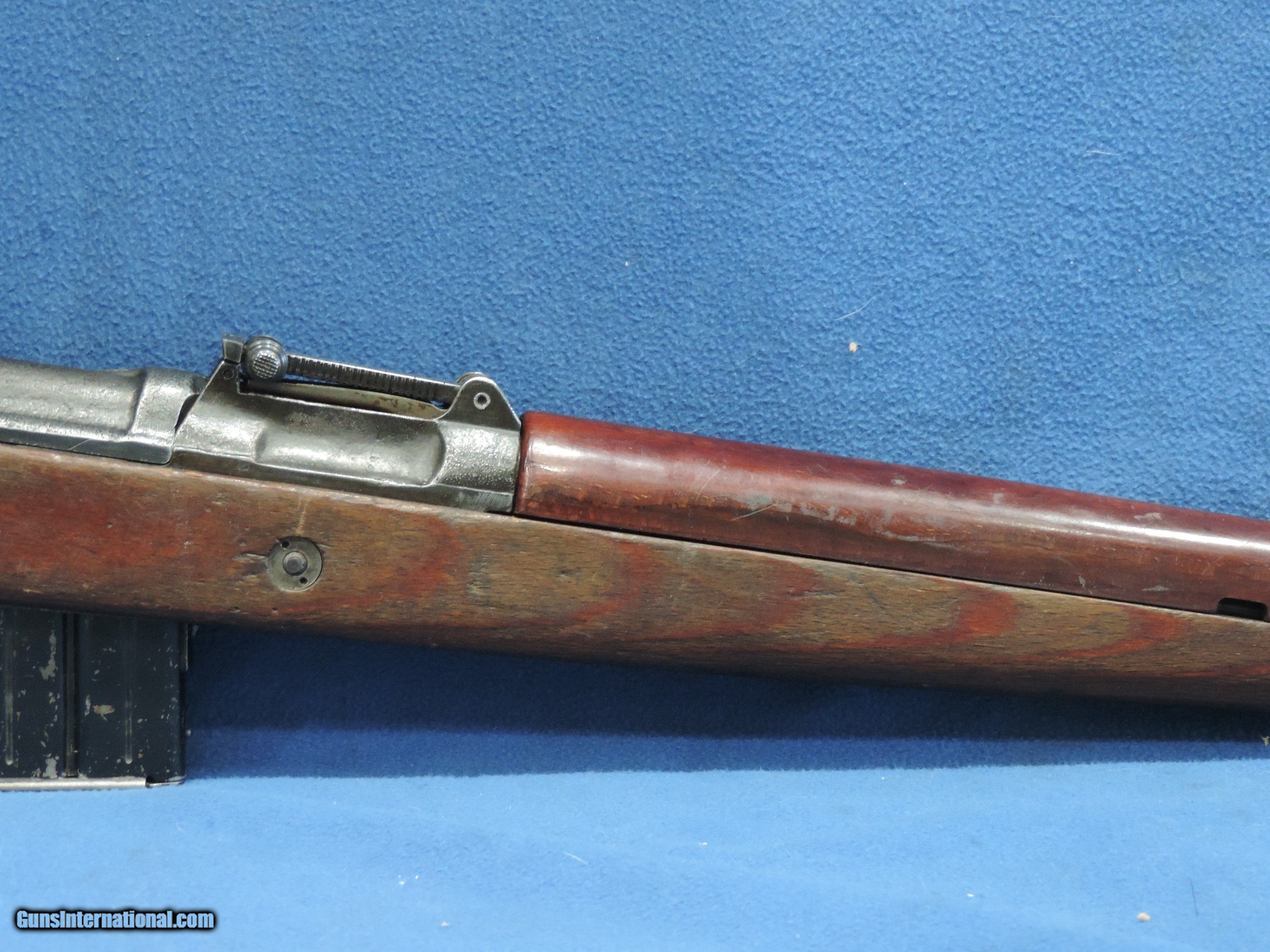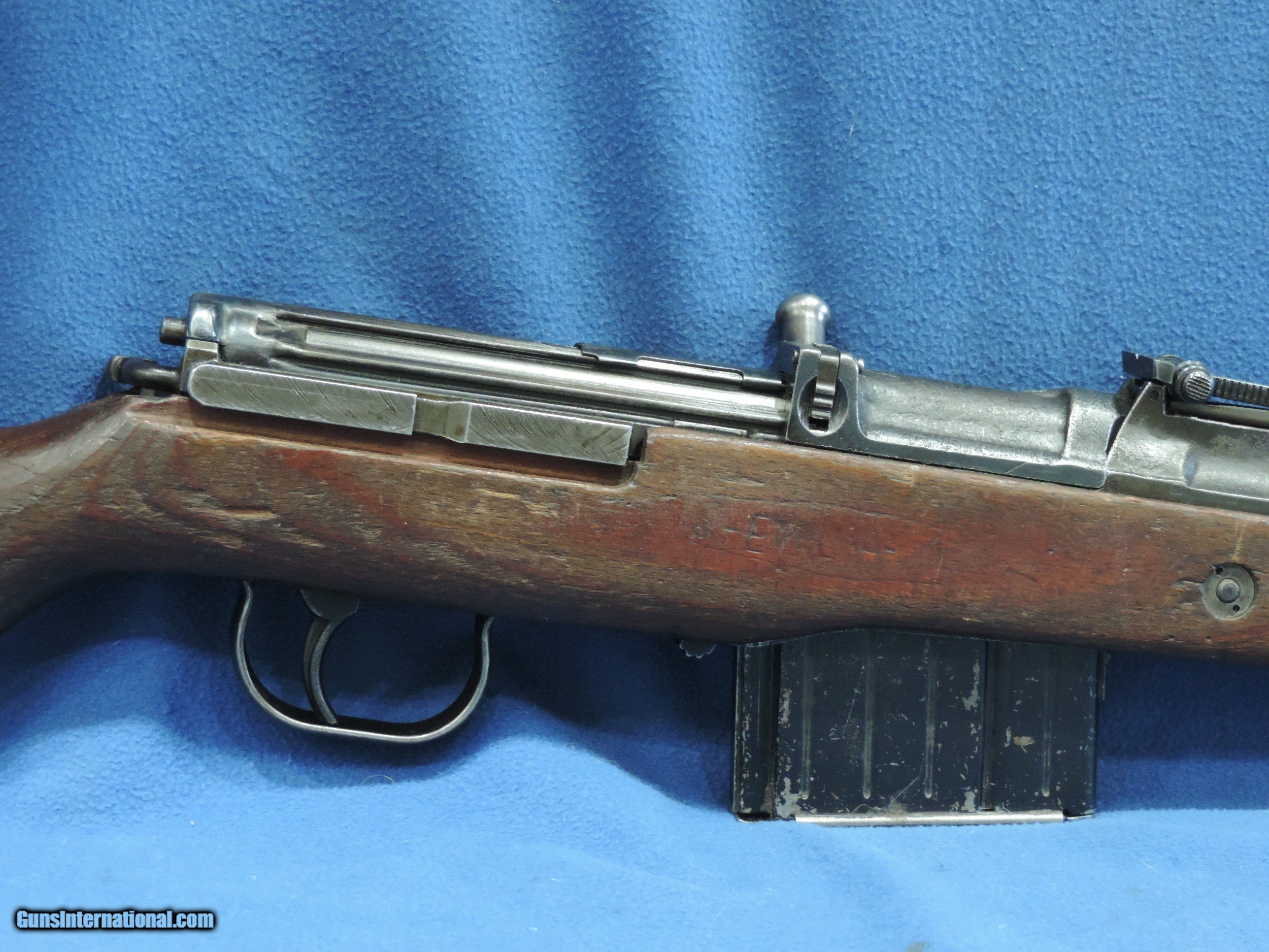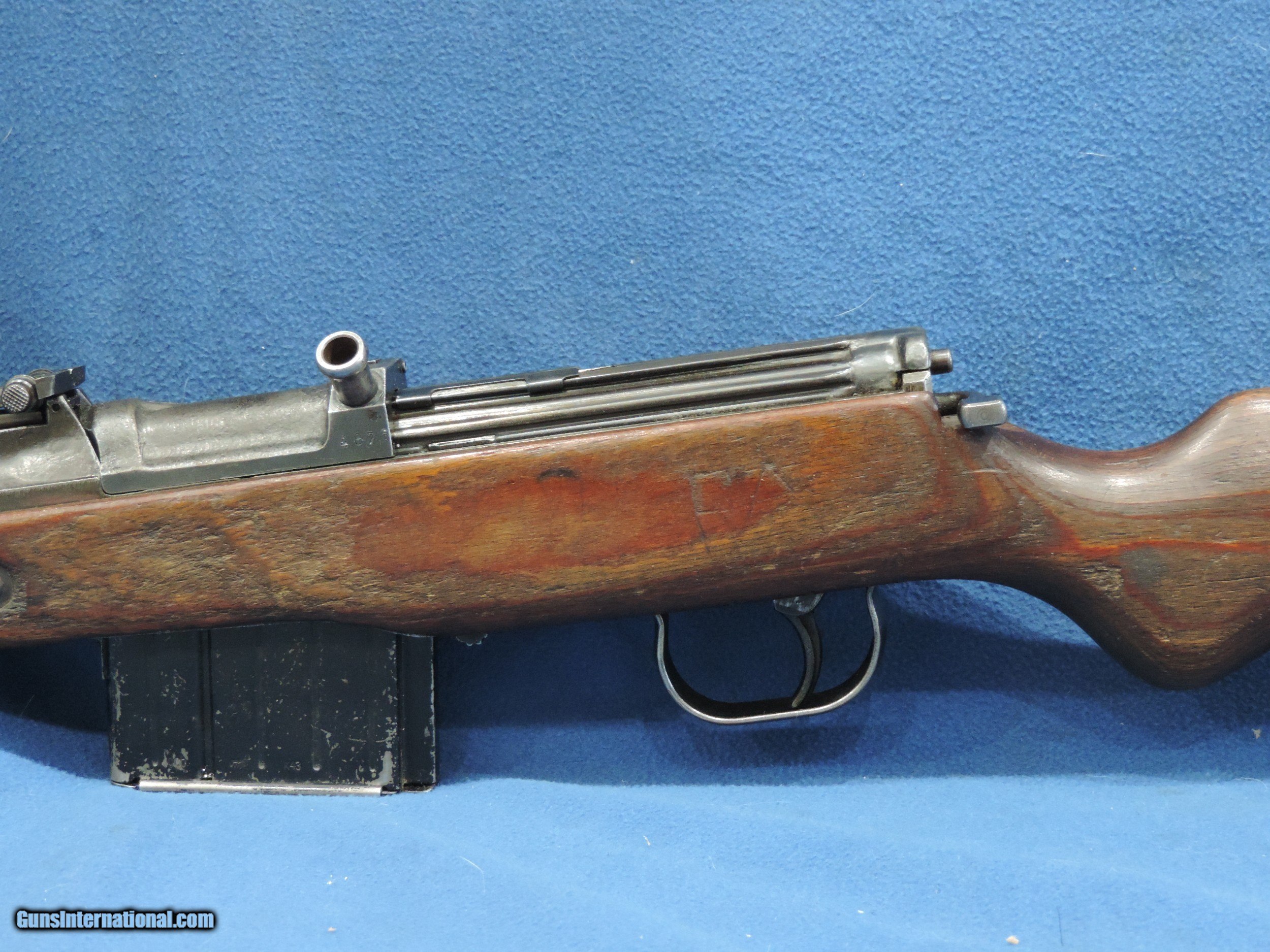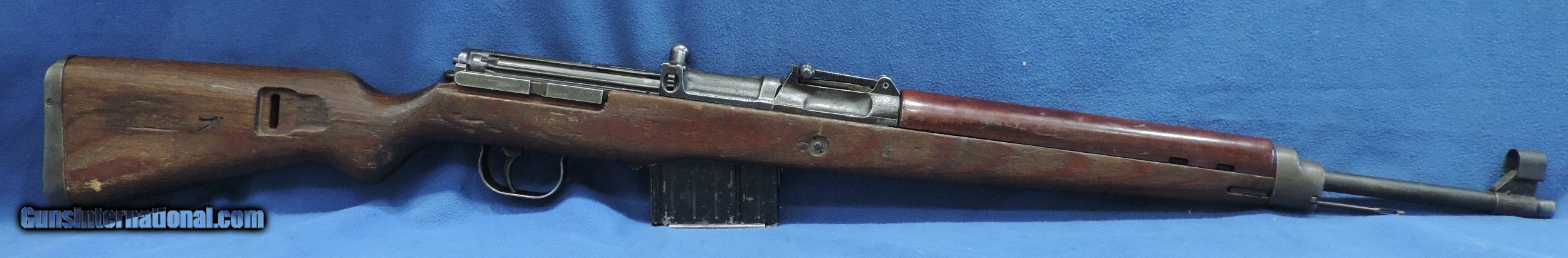 Description: INV. 8885 HITLER'S GARAND, WALTHER K-43 CAL 8MM, SER. 4876. THIS IS A GREAT EXAMPLE OF THE VERY LATE WAR K-43. THE CASTINGS ARE QUITE CRUDE AS THE FINISHES WERE RATHER POOR THEN. THIS GUN HAS RETAINED ABOUT 80% 0F THE ORIGINAL FINISH. ALL NUMBERS MATCH AND HAVE THE PROPER WAFFENAMTS. THE CORRECT LAMINATED WOODSTOCK AND HANDGUARD HAVE ABOUT 45% OF THE ORIGINAL LACQUER THE SURFACE ON THE LEFT SIDE SHOWS SOME SMALL AREA OF FLAKING BUT THAT IS UNDER THE LACQUER AND WAS PROBABLY CONSIDERED USABLE. THE LEFT SIDE ALSO HAS THE INITIALS "FA" LIGHTLY CARVED IN IT, THE RIGHT SIDE HAS AN "R" AND HIS FRAU'S NAME, "S.EMILIA". HOWEVER THER ARE NO SPLITS OR DINGS IN ANY OF THE WOODS PARTS.. THE BORE IS REALLY NICE, QUITE BRIGHT WITH SHARP WELL DEFINED RIFLING AND SOME LIGHT SCATTERED FROST. IT COMES WITH ONE PROPERLY MARKED K-43 STAMPED MAGAZINE, THIS IS A GREAT FIND FOR THE COLLECTOR, SHOOTER THAT DOESN'T WANT TO MORTGAGE THE FARM TO GET A NICE SHOOTING EXAMPLE OF "HITLER'S GARAND...MODESTLY PRICED ....$3495.*** ***100$ SATISFACTION GUARANTEED P. S. ADDITIONALLY YOU CAN UPGRADE IT TO THE VERY SCARCE SNIPER VERSION. WE ARE OFFERING A REPRO SCOPE MOUNT WITH AN ORIGINAL ZEISS SNIPER SCOPE.. IT IS STAMPED, ZFK 43, DOW /41603..IT IS IN REALLY FINE CONDITION. BRIGHT WITH PERFECT CROSS HAIRS..ONLY..... $1495 .. To purchase this firearm or if you want to request more information contact us at: Email ckguns[at]ymail[dot]com Phone 201-512-0002 Cell 201-575-6838 FAX 201-215-4759 We accept most major credit cards. Prices shown are Discounted 3% for Cash or Check. The buyer must be familiar with all the laws governing the purchase and the ownership of firearms in their own city and state. The Yankee Armorer, Inc is not responsible for any failure to comply with or observe these laws. The Yankee Armorer, Inc will only ship after full payment and receipt of all required documents. Shipping: Add $35.00 for handguns, $45.00 for long guns. New Jersey buyers are subject to a 7% sales tax. The Yankee Armorer, Inc offers a 3 day inspection period with full refund upon return of intact firearm and in the original condition. The Yankee Armorer, Inc offers a no interest lay away program - 25% down; 25% in 30 days; 25% in 60 days; and full payment in 90 days. Any violation of this policy is subject to restocking and forfeiture of all payments. Any variation from this policy must be agreed to in advance. Unshipped Cancelled sales are subject to a 20% restocking fee. Be advised that all firearms sold by The Yankee Armorer, Inc. or the Gun Exchange, LLC (SELLER) are sold as collector’s items. They have not been fired or tested for safety and must be examined by a license gunsmith prior to use. By purchasing any item from the (SELLER), you are agreeing to hold the (SELLER) free from any damages or lawsuits of any nature. Any item left for transfer or storage will be charged to $25.00 per month, per item from the day of its receipt. Any variation from this policy must be agreed to in advance. Store hours 10:00 am to 5:00 pm Tuesday -Saturday. It's always best to call for appointment. Store 201-512-0002, cell 201-575-6838. SOLD |