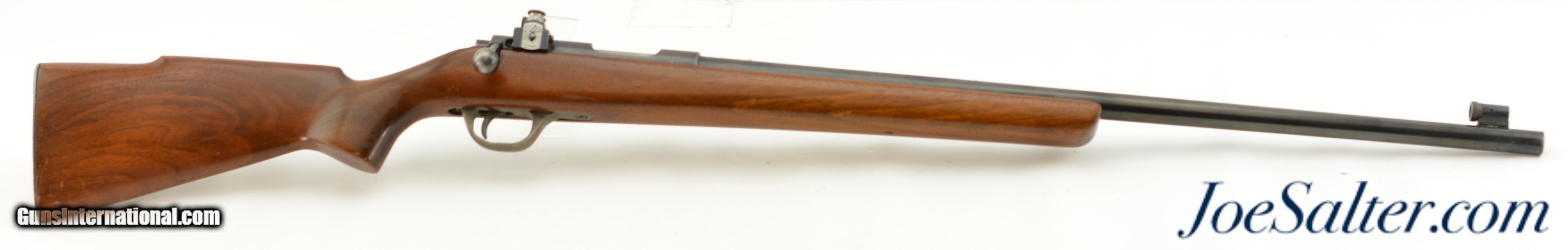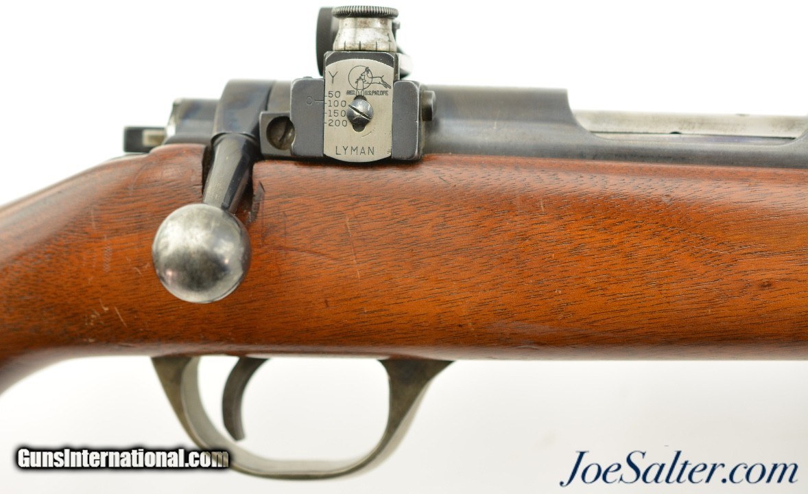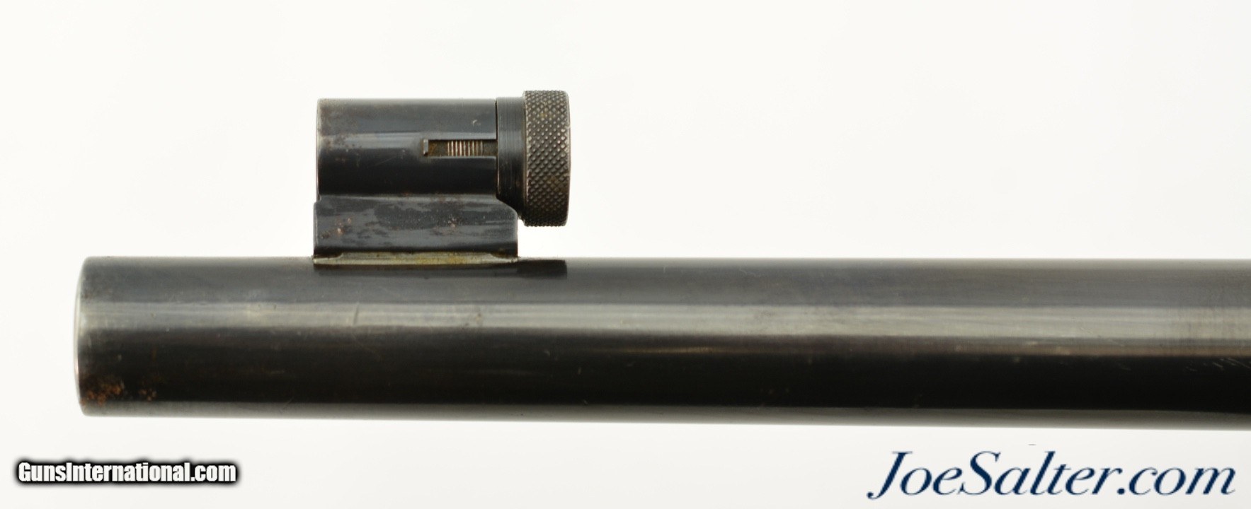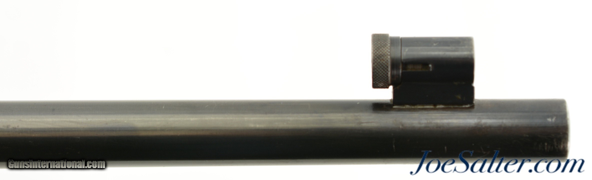 Description: Serial #22680, .22 LR, 25 ½ inch barrel with a bright, excellent bore. This is the Walther single shot "Sportmodell" target rifle that is Crown "N" nitro proofed manufactured in pre-war Germany featuring a heavy barrel and three position safety. In very good condition the barrel and action retain about 80-85% of a nicely done re-finished blue with scattered light use marks and scratches. The walnut stock is solid with light surface level scratches and contusions. It is sighted with a receiver mounted Lyman aperture peep sight and is drilled and tapped on the barrel for optics. The action functions properly and has a great trigger with light, crisp pull. A very well built Walther target rifle. FFL or C&R; Curio/Relic: Yes Price: $745.00 Contact Seller |