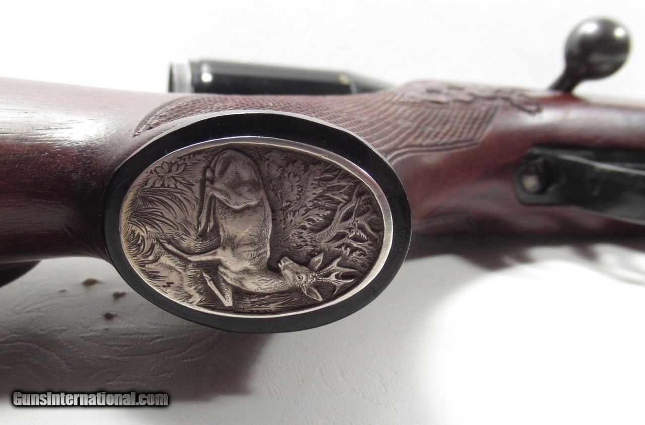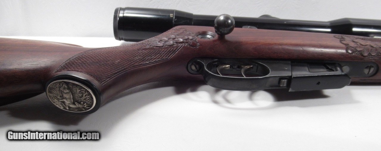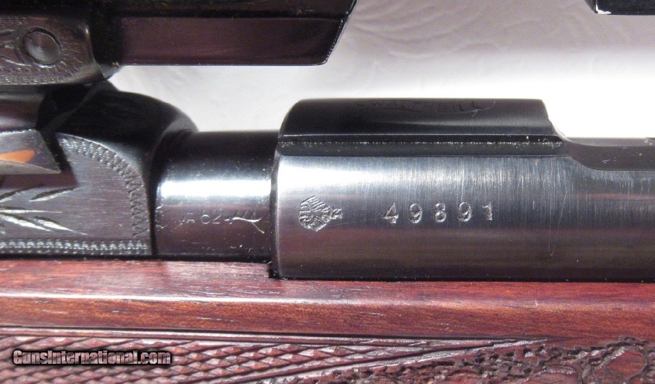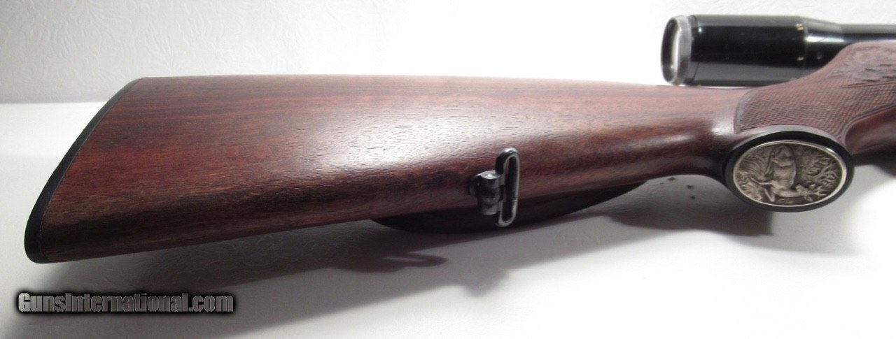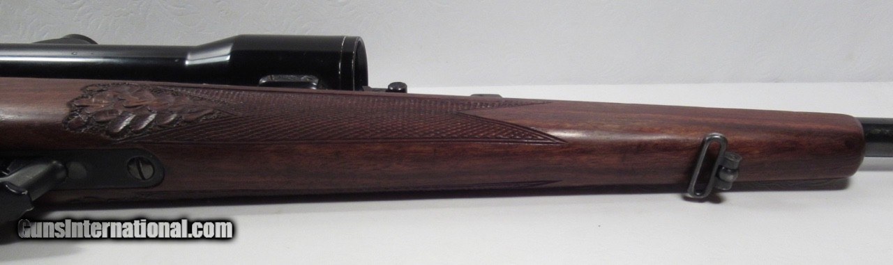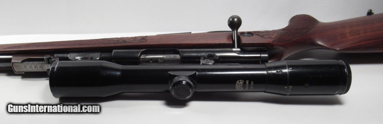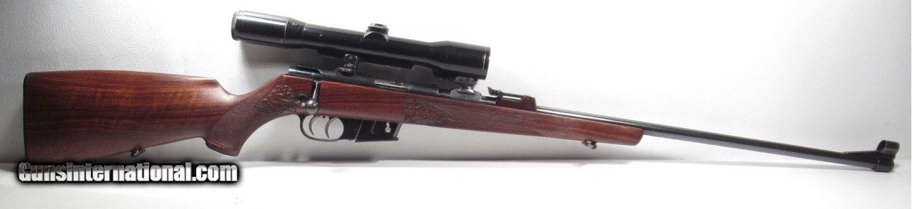Description: Walther KKJ; Serial No. 49891; 22 Hornet; 24” Barrel; Very Rare Deluxe Model with Carved Oak Leaf Pattern & Checkered Stock; Hensoldt & Wetzlar Diavari 1.5-6x Scope Mounted with Claw Mounts; Metal & Wood at 99%; Scope has few exterior wear spolts but Optics Perfect with European Tri-Plex Cross Hairs; Double Set Triggers work Perfectly; Perfect Action & Bore; Rare & Beautiful Rifle;FFL required for shipping; Price: $2,400 Shipped; Price includes insured shipping; Attention Texas Buyers: We Must Collect 6.75% Sales Tax;return policy: three days inspection from the date the item is received; full refund of shipping both ways ONLY IF THE ITEM IS MISREPRESENTED. Note: International sales only as laws permit. Antiques shipped without license to anyone EXCEPT New Jersey and City of New York, where a FFL is required; (Scroll to view 22 photos of this item). SOLD Manufacturer: Walther Model: KKJ Serial Number: Serial No. 49891 |