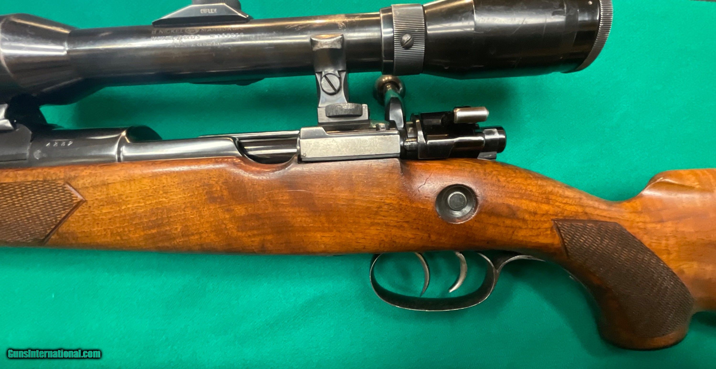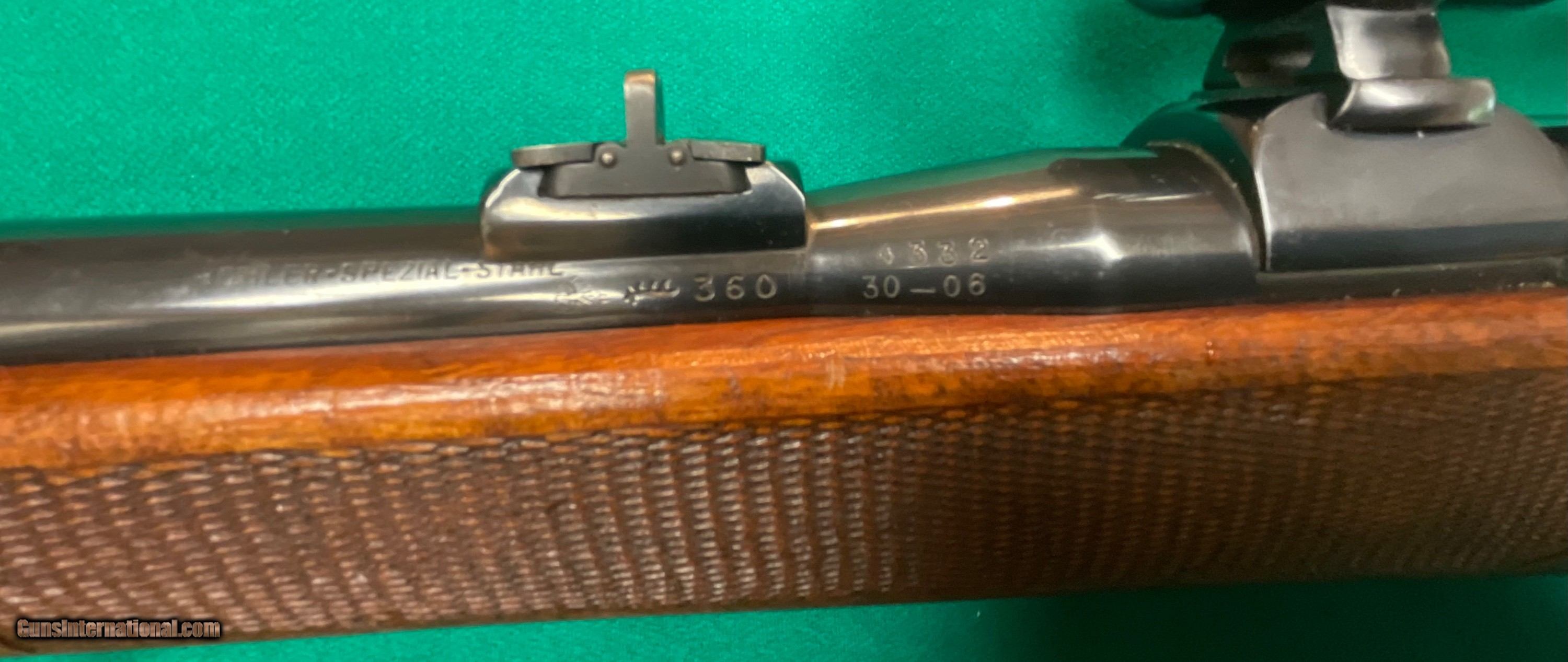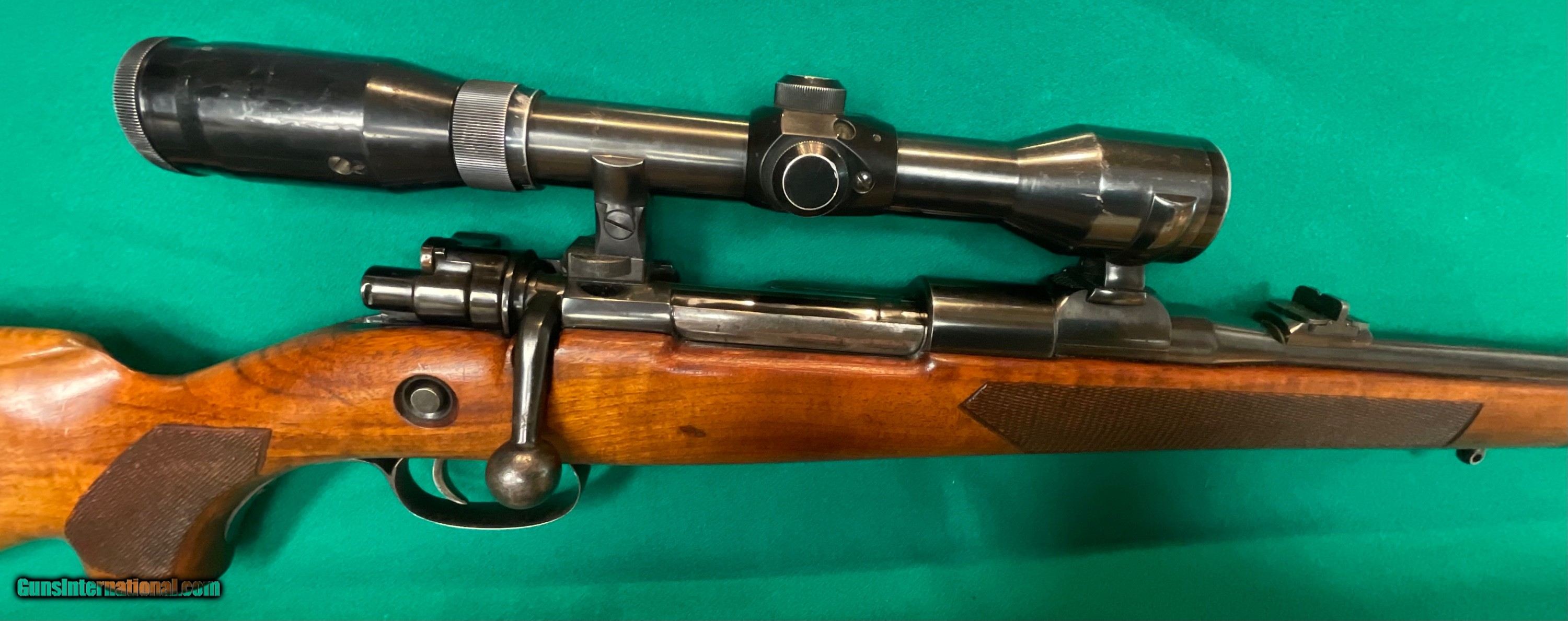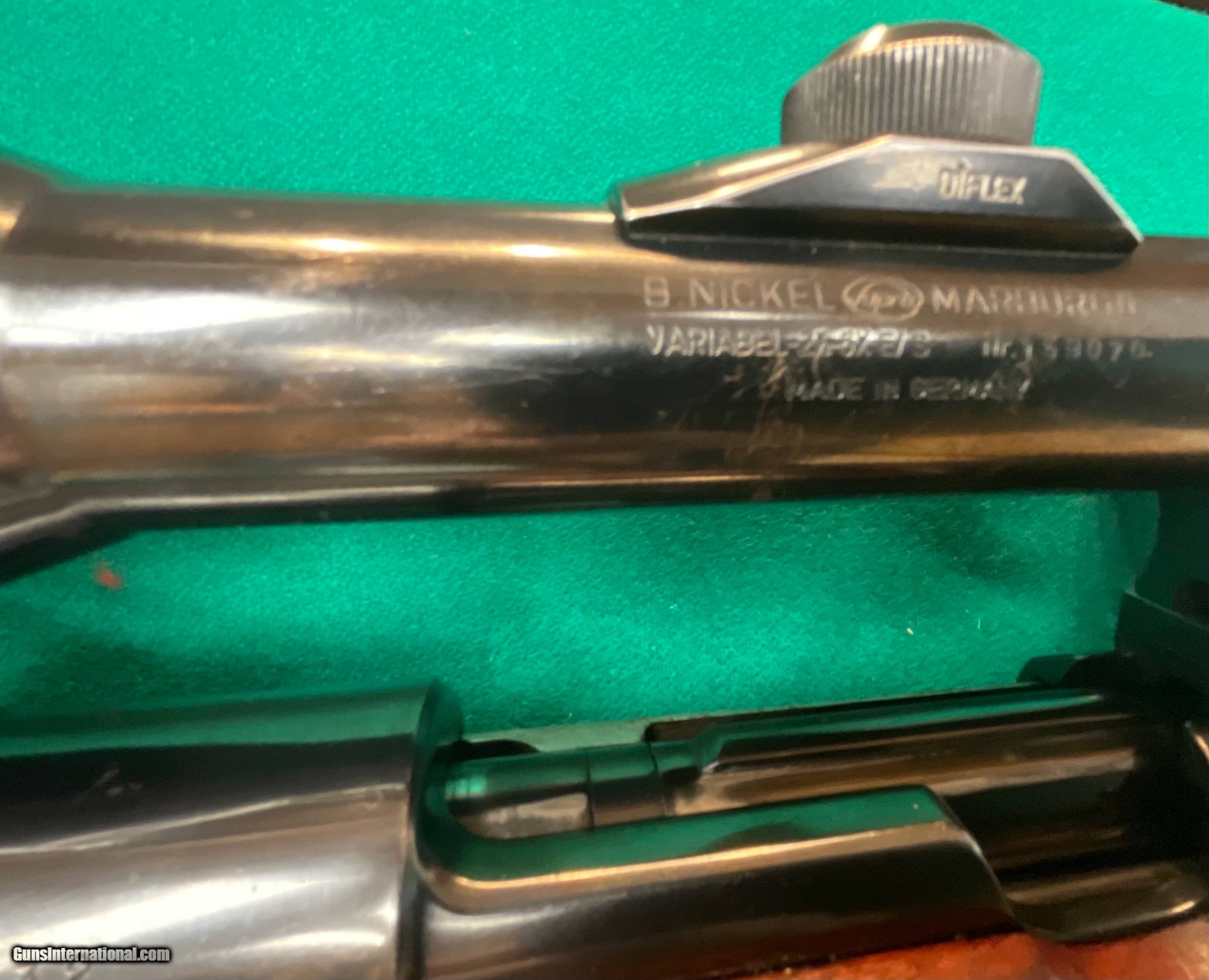 Description: REDUCED TO $1198 //// Excellent Walther sporting rifle in 30-06. ithink it's a model B and from the mid 60's. Factory claw mounted Nickel scope. double set triggers. 24.5 inch barrel and a 14 3/8 inch pull over factory butt plate. 98 mauser action. $1198 plus $48 insured shipping. No credit cards and no trades. C&R ok. 5 month layaway available. SOLD Curio/Relic: Yes |