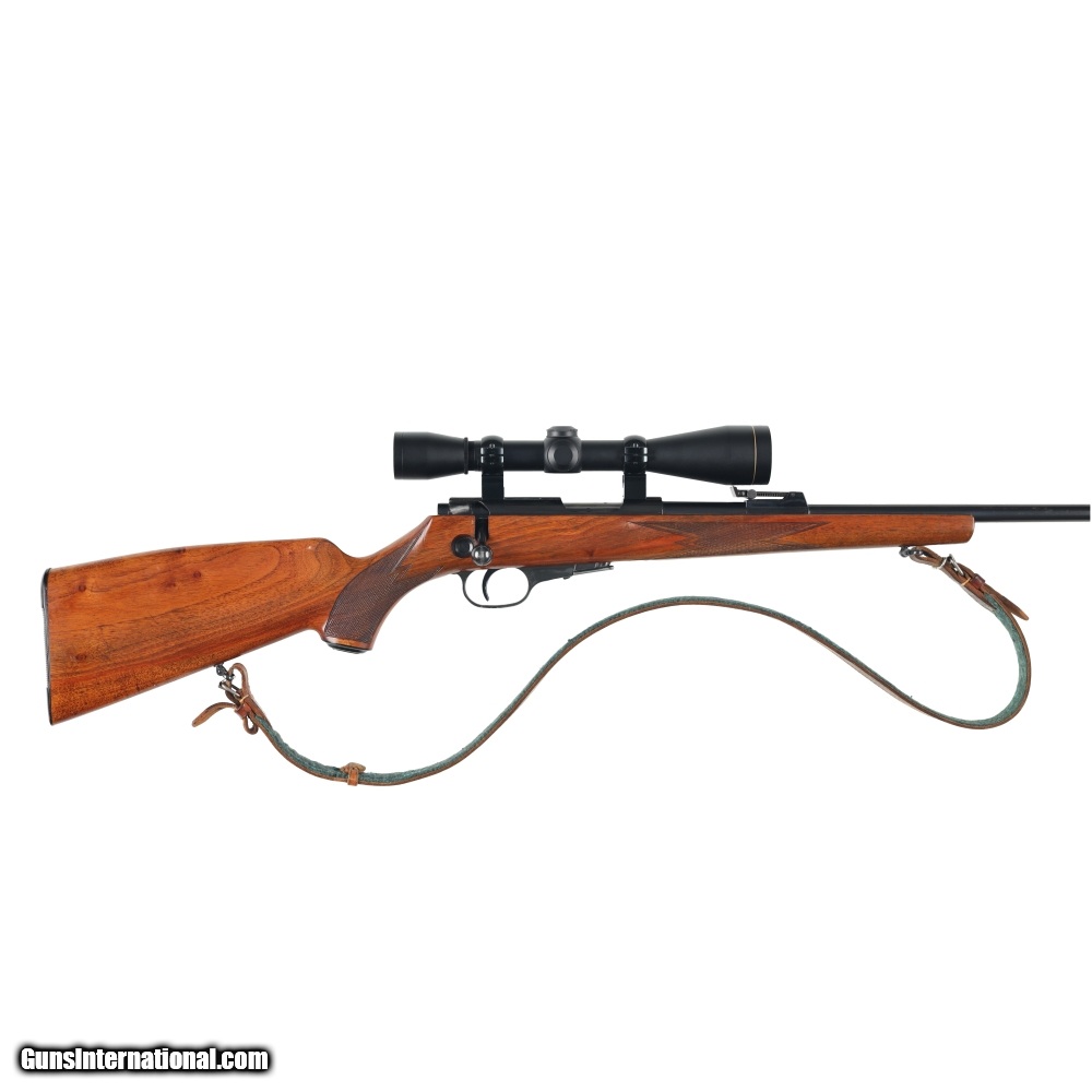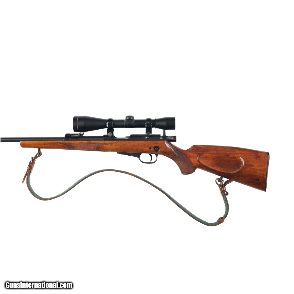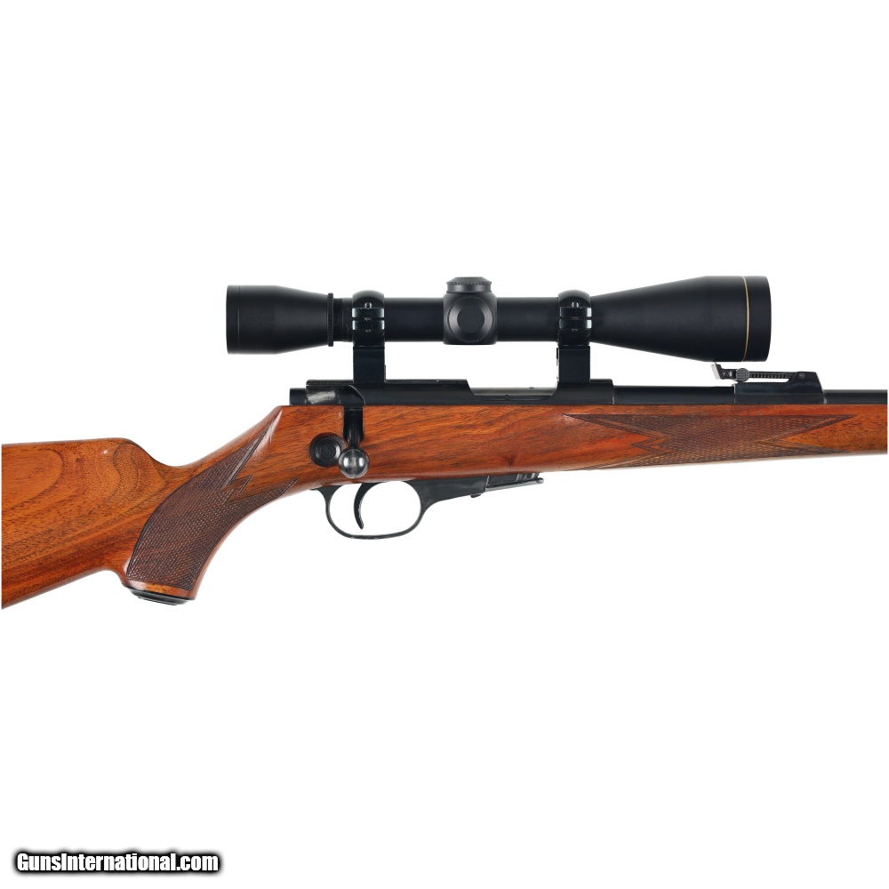 Description: This Carl Walther rimfire sporting rifle is a post war rifle intended for training, varmint and target use. It is mounted with a Leupold M8 6x42 scope which has been done somewhat recently. Overall condition is quite good, with moderate wear and handling marks appropriate for its age. The bore on this rifle is quite clean with sharp rifling. Manufactured in: Germany Hand: Right Hand Action Finish: Blue Action Description: Bolt Action Metal Finish: Original Barrel Length: 22 Inches Barrel Condition: Very Good Stock Finish: Original Stock Condition: Good Type of Butt: Plastic Buttplate Grip: Pistol Forend: Checkered Extra Barrels: No. SOLD Manufacturer: Carl Walther Model: B/A Caliber Info: .22 Long Rifle Condition: Preowned Metal Condition: Very Good Action: Bolt Action Triggers: Single Fore End: Checkered LOP: 14 1/4 Finish: Original Weight: 6.9 lbs Extras: No. Case: NONE |