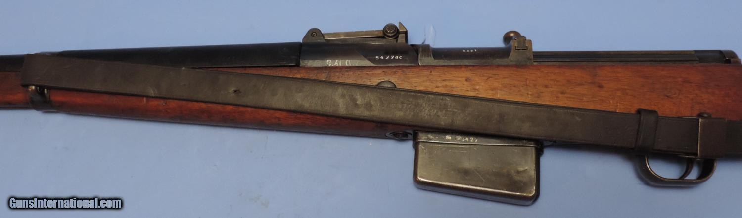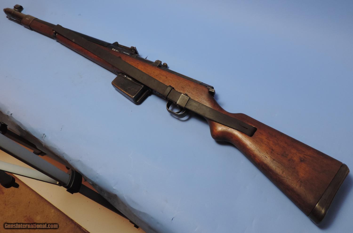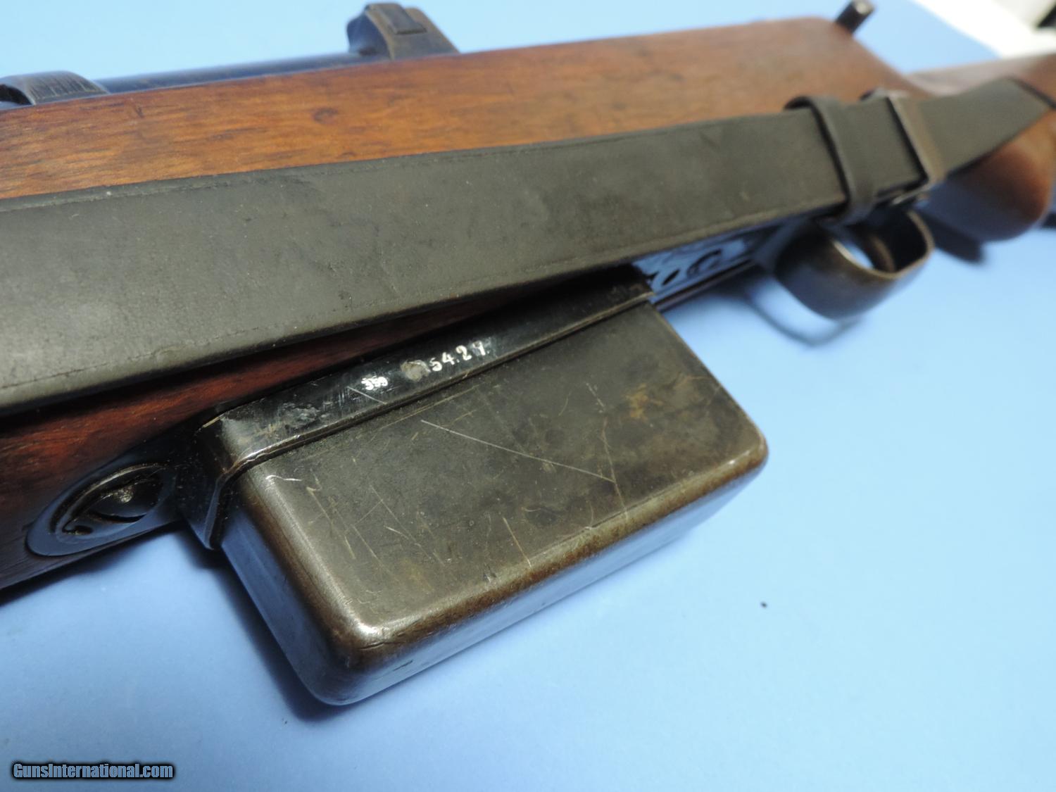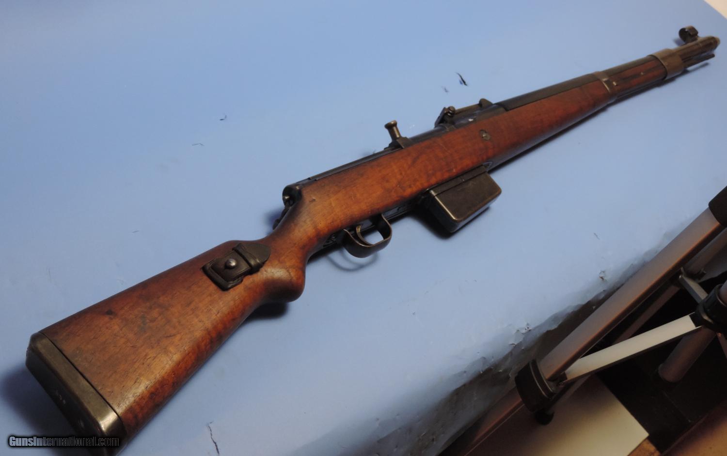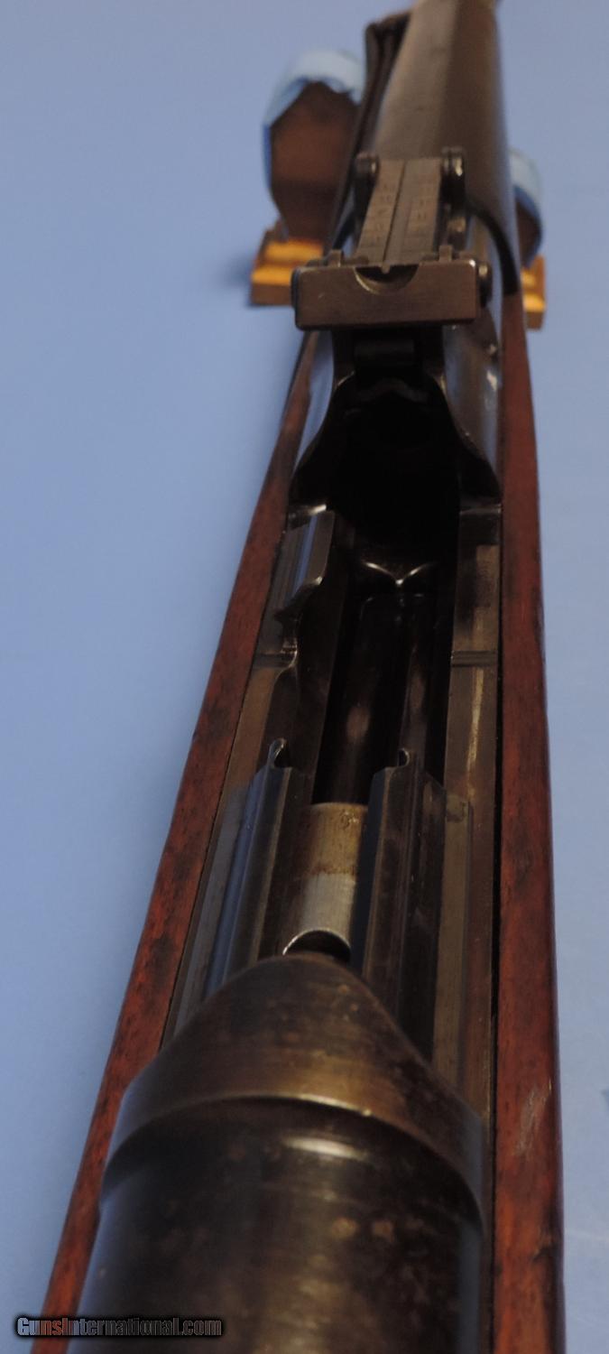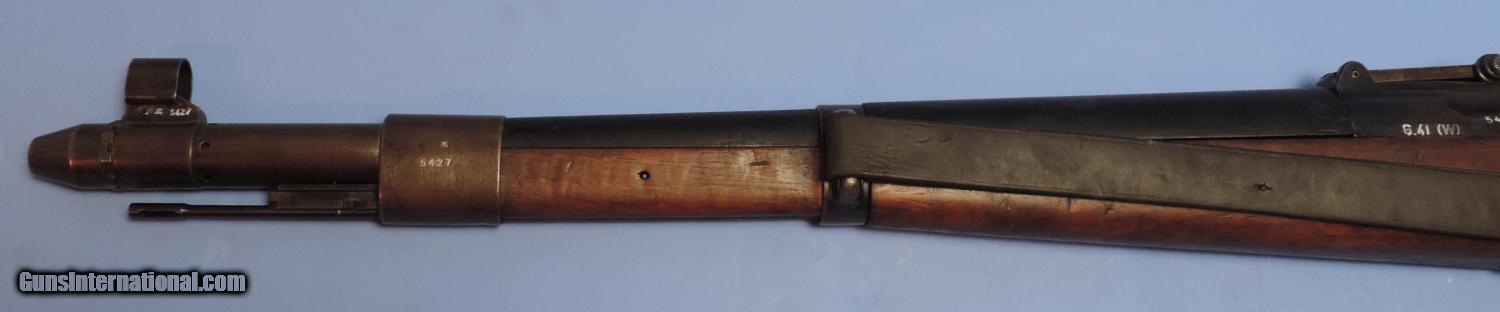 Description: Inv. 5670 Walther G-41, Caliber. 8mm, Ser. 54XX. Awesome, this was Hitler's failed answer to the M1 Garand. Precursor to the successful G-43. As a result, very few were produced and even fewer survived. Even less are in such fine condition. The metal finish on the barrel assembly has toned to an even soft grey brown. The machined receiver is metallic grey. The bolt assembly still has the remnants of blue on it's rough steel casting. There is no rust or pits anywhere, just some occasional pinpricks and a general fading of the finish. All parts match. The numbered parts are as follows: the rear sight, sight base, bolt, front sight (plus Eagle/359), gas cone and trigger floor plate. Also matching with Waffennamts is the receiver with an Eagle/359, the butt plate stamped DDP, Eagle/waA407, which is correct for the contractor. The magazine assembly, which is matching, and is Eagle/359 stamped. The safety is also stamped Eagle/359. The solid wood stock and Bakelite upper handguard are in super condition, with no nicks or dings and showing little use like the rest of the gun. It is marked Eagle/Swastika/359. The bore is fine, with strong rifling and some very mild graying. This is a very rare gun, all matching and in really fine condition. Just a wonderful find for the serious collector.........$6950 To purchase this firearm or if you want to request more information contact us at: Email ckgunsymail Phone 201-512-0002 Cell 201-575-6838 FAX 201-215-4759 We accept most major credit cards. Prices shown are Discounted 3% for Cash or Check. The buyer must be familiar with all the laws governing the purchase and the ownership of firearms in their own city and state. The Yankee Armorer, Inc is not responsible for any failure to comply with or observe these laws. The Yankee Armorer, Inc will only ship after full payment and receipt of all required documents. Shipping: Add $35.00 for handguns, $45.00 for long guns. New Jersey buyers are subject to a 7% sales tax. The Yankee Armorer, Inc offers a 3 day inspection period with full refund upon return of intact firearm and in the original condition. The Yankee Armorer, Inc offers a no interest lay away program - 25% down; 25% in 30 days; 25% in 60 days; and full payment in 90 days. Any violation of this policy is subject to restocking and forfeiture of all payments. Any variation from this policy must be agreed to in advance. Unshipped Cancelled sales are subject to a 20% restocking fee. Be advised that all firearms sold by The Yankee Armorer, Inc. or the Gun Exchange, LLC (SELLER) are sold as collector’s items. They have not been fired or tested for safety and must be examined by a license gunsmith prior to use. By purchasing any item from the (SELLER), you are agreeing to hold the (SELLER) free from any damages or lawsuits of any nature. Any item left for transfer or storage will be charged to $25.00 per month, per item from the day of its receipt. Any variation from this policy must be agreed to in advance. Store hours 10:00 am to 5:00 pm Tuesday -Saturday. It's always best to call for appointment. Store 201-512-0002, cell 201-575-6838. SOLD Curio/Relic: Yes Manufacturer: Walther Model: G-41 Serial Number: 54XX Caliber Info: 8mm |