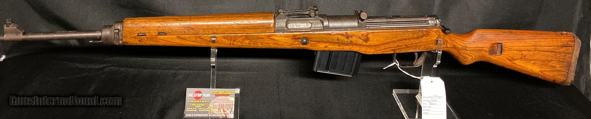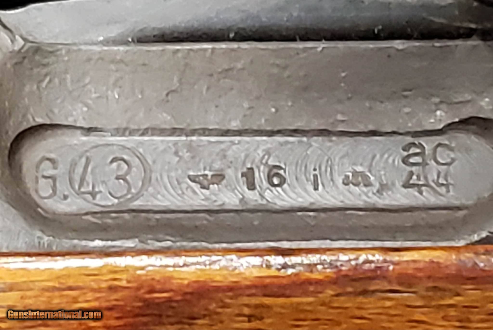 Description: Guns Listing ID: 665006 The Gewehr 43 or Karabiner 43 (abbreviated G43, K43, Gew 43, Kar 43) is a 7.92×57mm Mauser caliber semi-automatic rifle developed by Germany during World War II. The design was based on that of the earlier G41(W) but incorporated an improved short-stroke piston gas system similar to that of the Soviet SVT-40. It was manufactured using innovative mass-production techniques. SOLD Manufacturer: WALTHER Model: G43 Caliber Info: 8MM Condition: Used - Non-Certified Barrels: 20 BARREL Finish: WOOD/ STEEL |