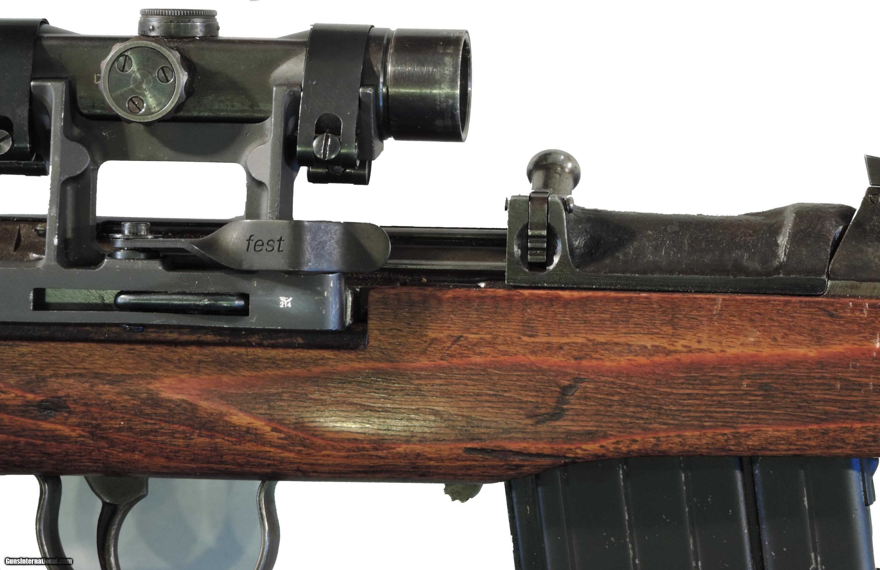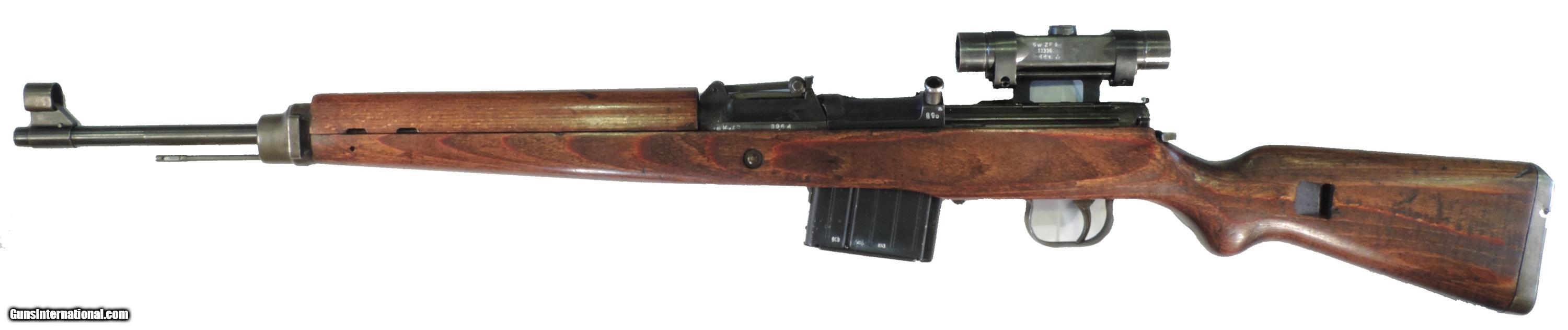 Description: Inv. 6375 Walther K 43, (AC -44) Cal. 8mm, Ser. 8XX d. A super nice example of "Hitler’s Garand". There is at the very least 85-90% of the original factory finish remaining. Even the rough cast receiver and bolt carrier do not show the usual flaking. The bulk of the loss is on the trigger guard and some sharp edge silvering. The receiver is stamped Eagle/359 as is the bolt carrier handle. This particular gun still has the original dust cover many times missing and the bolt release and scope rail which was deleted from may models at this late date. All numbers match. The stock and upper hand guard still have at least 90+% of the original factory lacquer. The wood itself is late war and roughly finished, but in super condition. Other than a few small surface dings there are no chips or splits anywhere. The gun comes with an original ZF-4 scope. It is marked G w Z4/, 1333/, ddx. The exterior condition is super. The scope itself crystal clear with the correct post and cross hair reticle. The mount is, as usual, a repro. The bore, like the rest of the gun is really great. The rifling is razor sharp, mirror bright with just the slightest hint of some scattered frost. The gun comes with one correct 10 round magazine. It is stamped, gcb, Eagle/WaA82, K43. Also in super condition. A really rare find in this condition. A great centerpiece for any collection and should be a joy on the firing line......$3795. To purchase this firearm or if you want to request more information contact us at: Email ckgunsymail Phone 201-512-0002 Cell 201-575-6838 FAX 201-215-4759 We accept most major credit cards. Prices shown are Discounted 3% for Cash or Check. The buyer must be familiar with all the laws governing the purchase and the ownership of firearms in their own city and state. The Yankee Armorer, Inc is not responsible for any failure to comply with or observe these laws. The Yankee Armorer, Inc will only ship after full payment and receipt of all required documents. Shipping: Add $35.00 for handguns, $45.00 for long guns. New Jersey buyers are subject to a 7% sales tax. The Yankee Armorer, Inc offers a 3 day inspection period with full refund upon return of intact firearm and in the original condition. The Yankee Armorer, Inc offers a no interest lay away program - 25% down; 25% in 30 days; 25% in 60 days; and full payment in 90 days. Any violation of this policy is subject to restocking and forfeiture of all payments. Any variation from this policy must be agreed to in advance. Unshipped Cancelled sales are subject to a 20% restocking fee. Be advised that all firearms sold by The Yankee Armorer, Inc. or the Gun Exchange, LLC (SELLER) are sold as collector’s items. They have not been fired or tested for safety and must be examined by a license gunsmith prior to use. By purchasing any item from the (SELLER), you are agreeing to hold the (SELLER) free from any damages or lawsuits of any nature. Any item left for transfer or storage will be charged to $25.00 per month, per item from the day of its receipt. Any variation from this policy must be agreed to in advance. Store hours 10:00 am to 5:00 pm Tuesday -Saturday. It's always best to call for appointment. Store 201-512-0002, cell 201-575-6838. SOLD Curio/Relic: Yes Manufacturer: Walther Model: K 43 Serial Number: 8XX d Caliber Info: 8 mm |