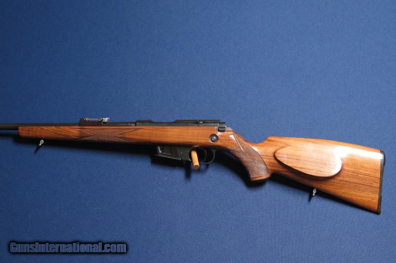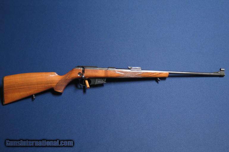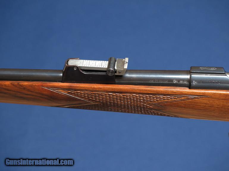 Description: alther KKJ.HO 22 Hornet. 22" barrel. Front sight hood. Grooved receiver. Adjustable rear sight. Side cheek piece. 99% condition. Excellent bore. SOLD |