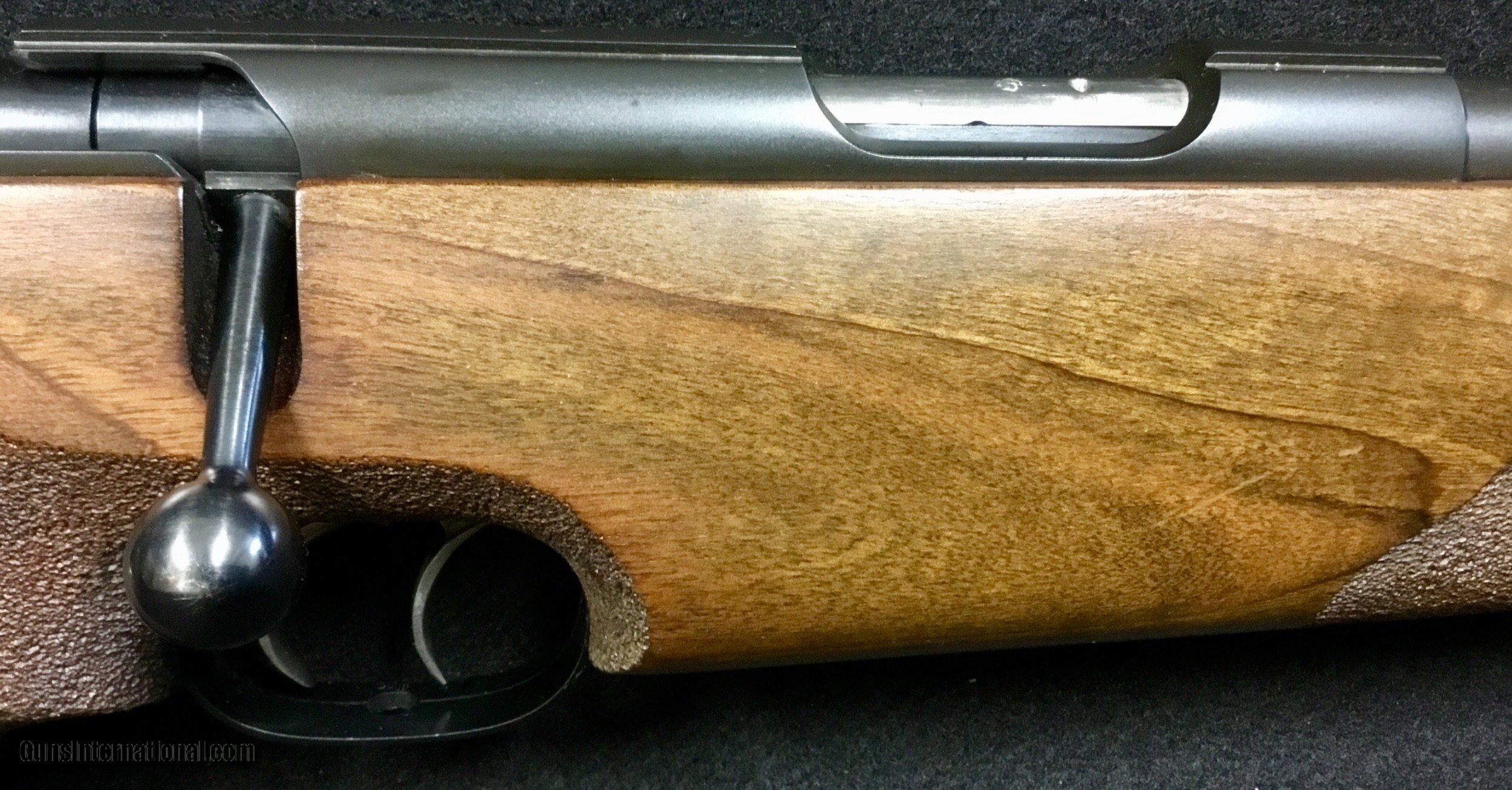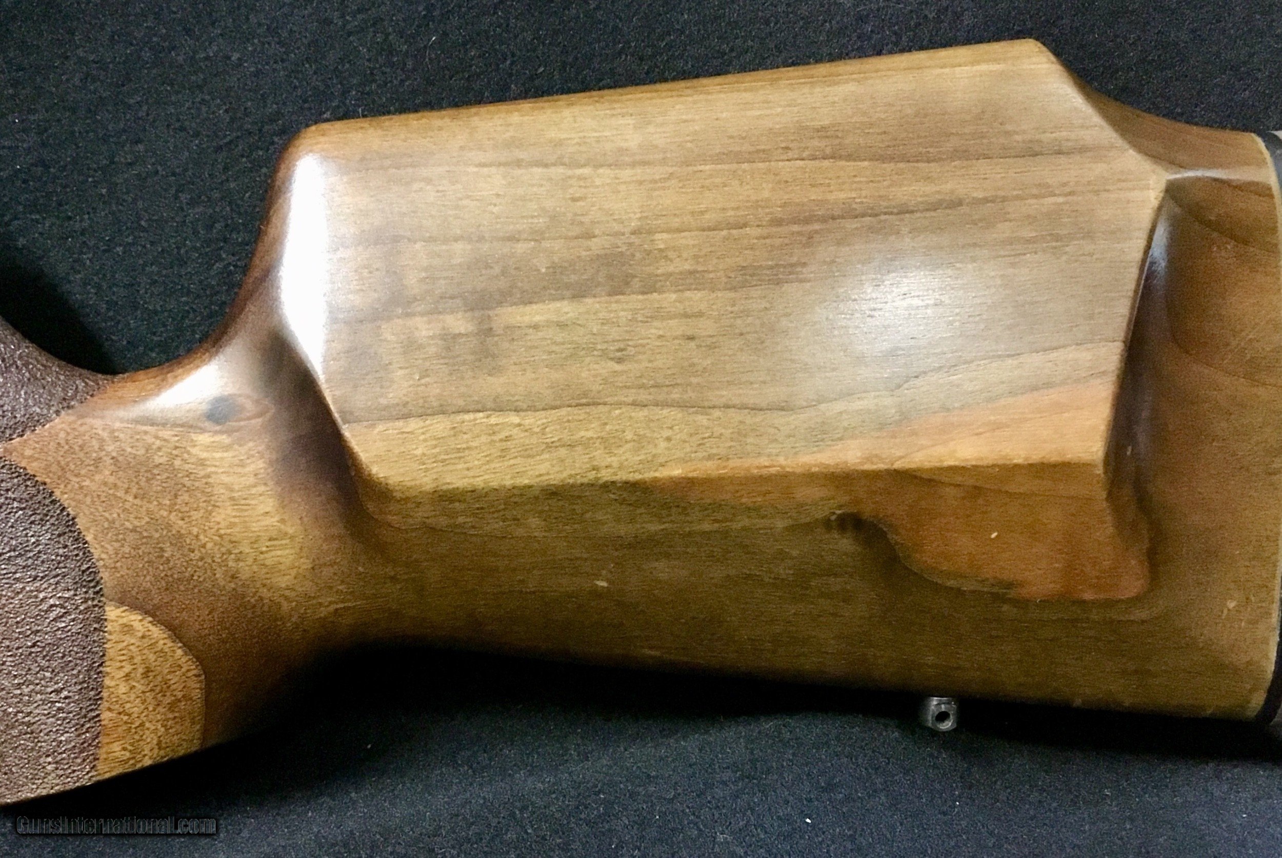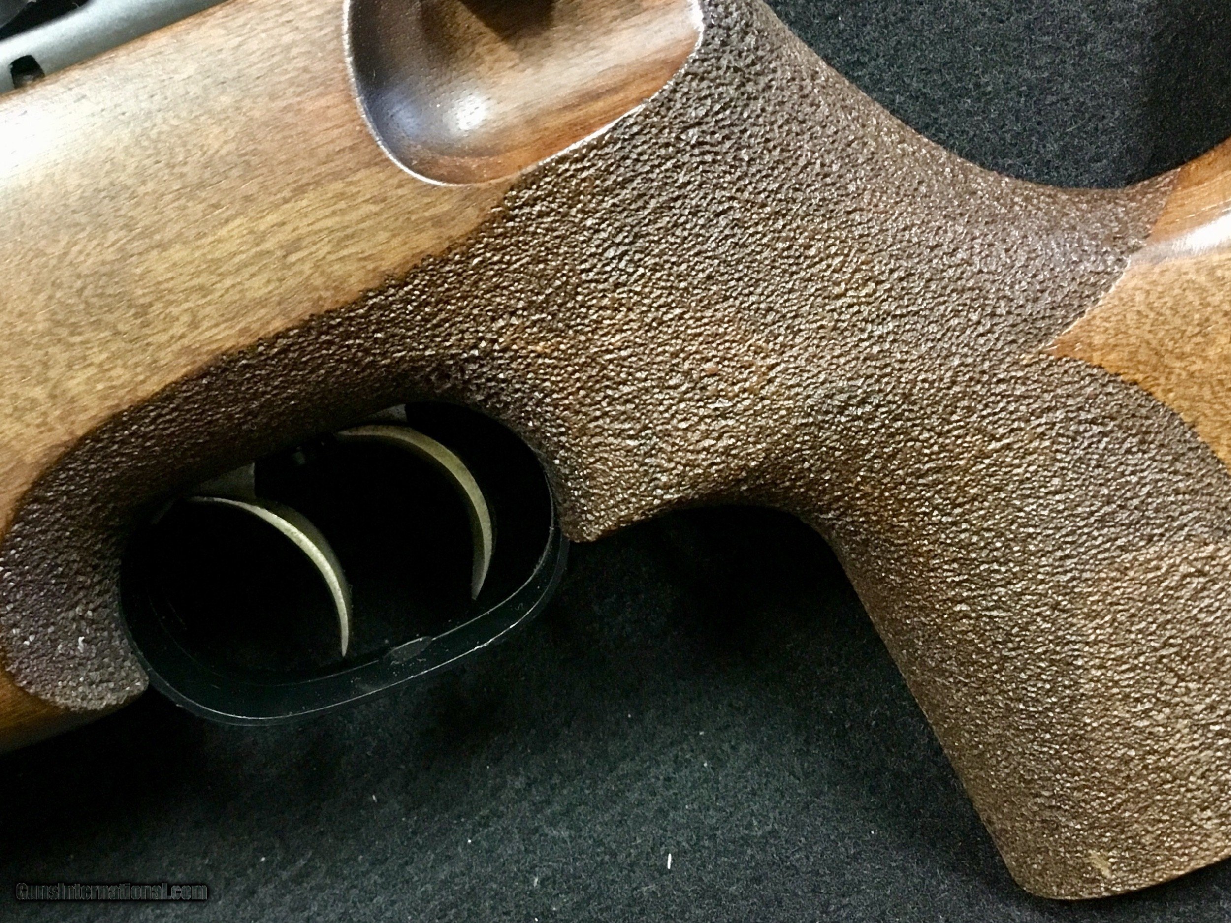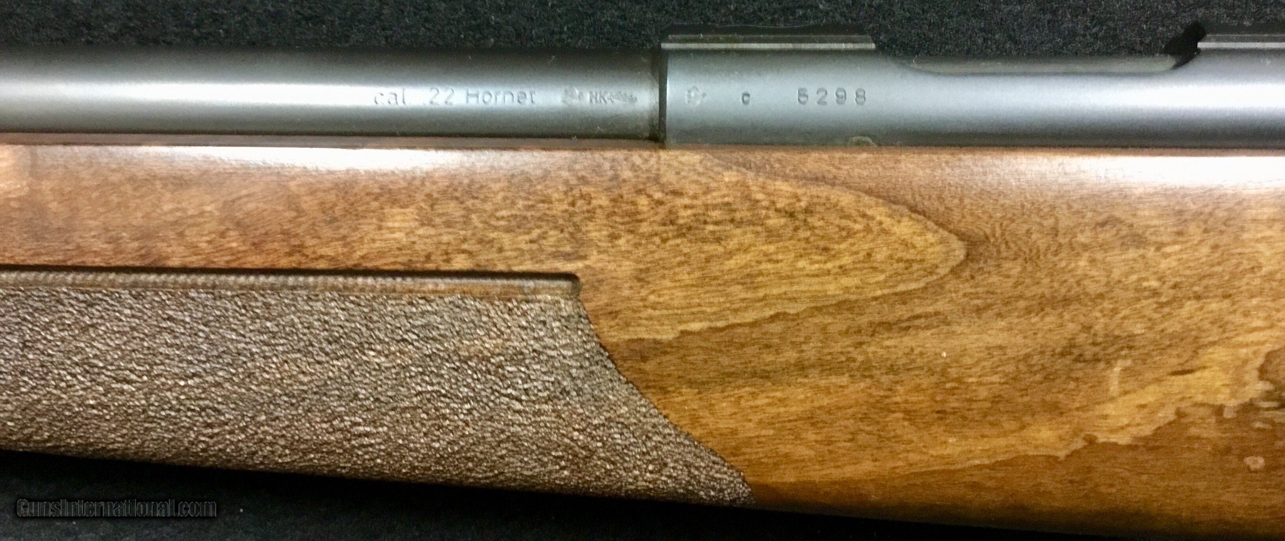 Description: Walther of Germany Rifle. Model: KKM. SN: 529x. Cal: 22 Hornet. 60mm/23.75" heavy straight taper barrel with 57mm/2.25" step taper end. Barrel diameter 0.868"/0.967" respectively. Single shot bolt action. Fantastic European walnut semi-target style stock with palm contoured and stippled grip and forend. 14 1/2" LOP over no-name vented pad. Gun weighs 8lbs15oz. Condition: Gun is in excellent overall original condition showing very little signs of use. Bore brite, rifling sharp, and clean crisp trigger pull. 100% blue remains. Stock finish excellent with only faint and scant handling marks. Gentlemen, this is a fantastic gun for the range or field. Highly accurate and made by the best in the industry. Rarely found in 22 Hornet. Please do not wait on this one - CALL NOW! FFL Required Buyer to pay flat $50 S/H/I. SOLD Manufacturer: WALTHER Model: KKM Caliber Info: 22 HORNET |