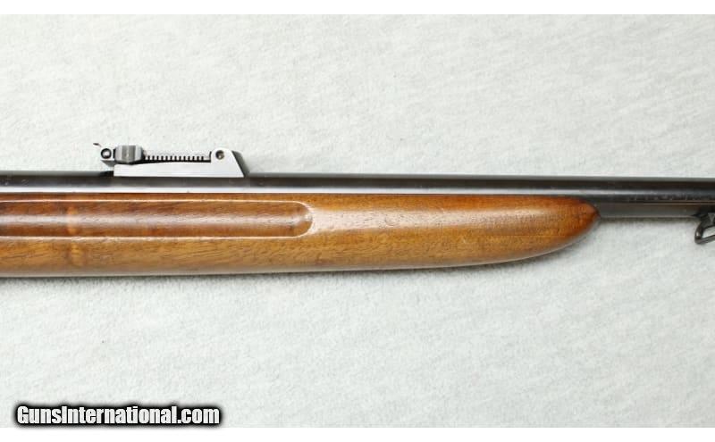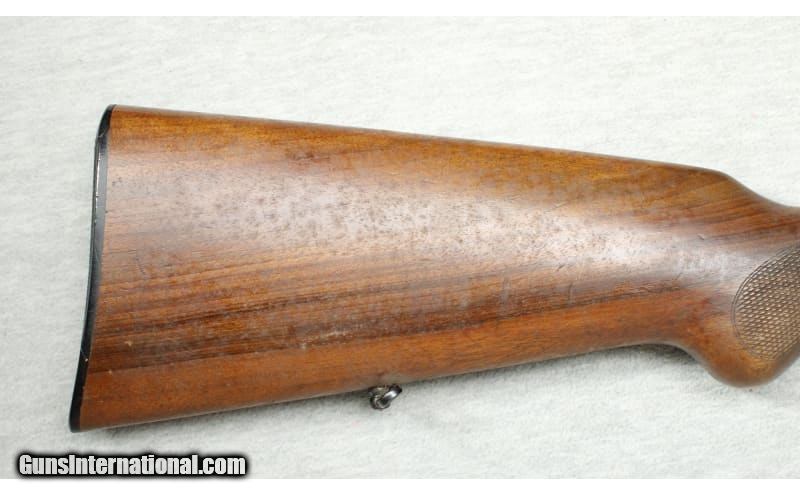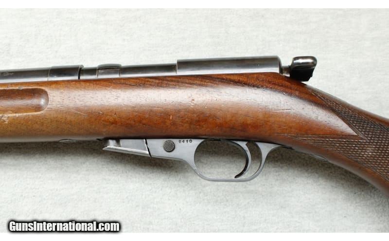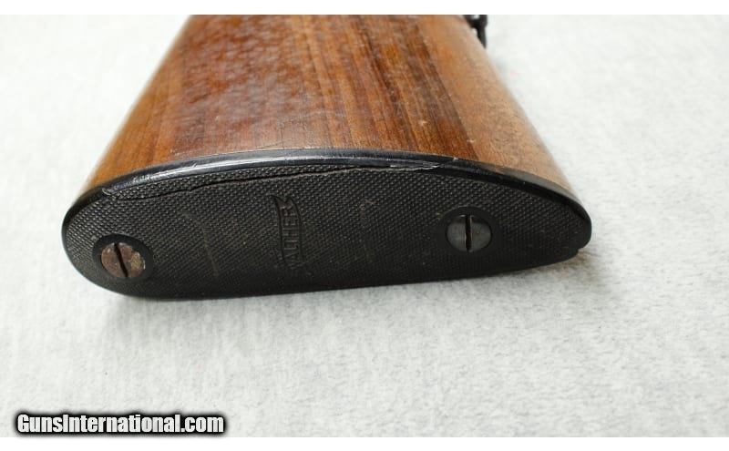 Description: Walther Model 2 chambered in .22 LR. This unusual Walther rifle can be operated either as a bolt action or semiautomatic rifle. The 24.25" barrel has an excellent bore with bright, strong rifling. The front sight is a blade mounted on a ramp. The rear sight is a standard German military style tangent leaf sight. The left side of the barrel has the German proof eagle followed by the crown over N proof followed by Nitro in script. The top rear of the receiver is marked Waffenfabrik Walther Zella-Mehlis (Thur.) followed by the Walther banner logo. The serial number is marked on the trigger housing. The stock is excellent. It has checkering at the wrist, a fluted forearm, and a hard rubber Walther banner buttplate. The rifle has two sling swivels installed. The action functions correctly. No box and 1 mag. .22 Long Rifle SOLD Metal Condition: Very Good Wood Condition: Very Good Bore Condition: Bright with good rifling Barrels: 24 1/4 inches Triggers: Factory Stock Dimensions: LOP 14 1/2 inches Fore End: Grooved walnut Butt Pad: Plastic pad Weight: 6 lbs 12 oz Sights: The front sight is a blade mounted on a ramp. The rear sight is a standard German military style tangent leaf sight. Item Location: La Vista, NE |