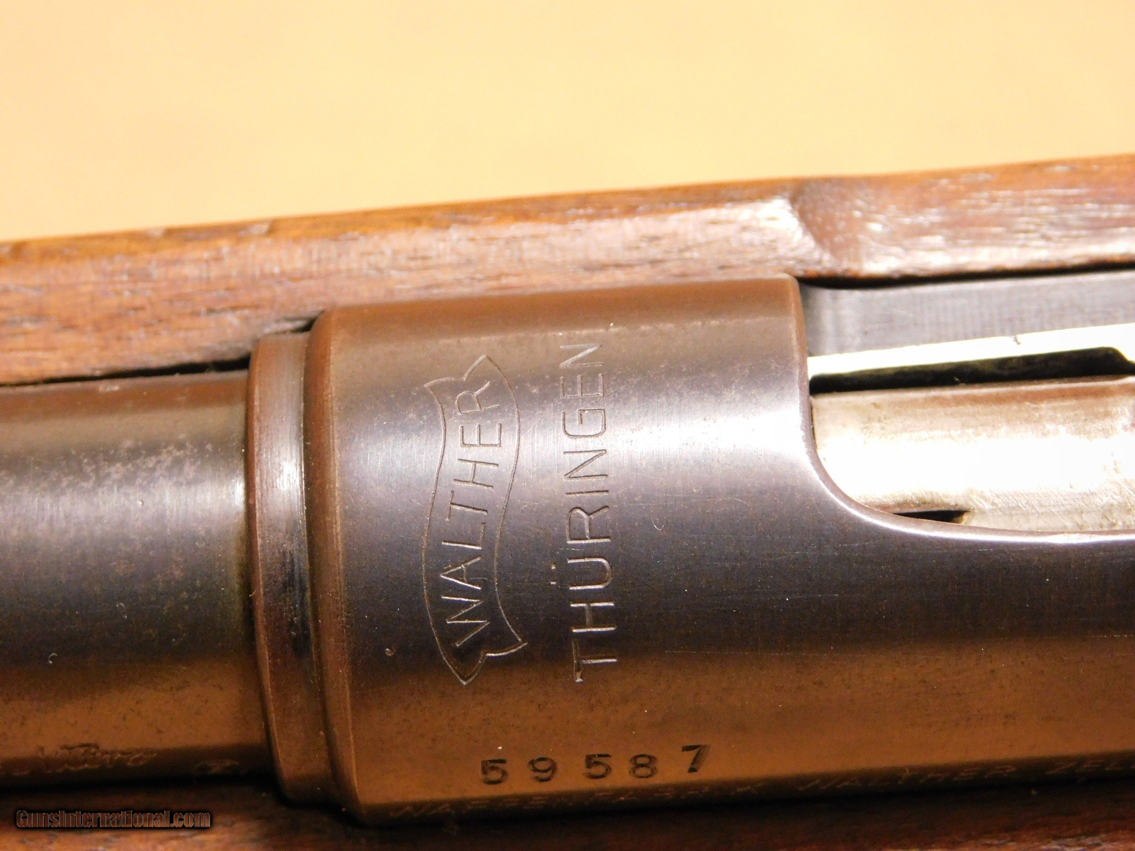 Description: This is an excellent example of the Deutsches Sportmodell, produced by Waffenfabrik Walther for use by military and NSDAP formations for rifle training. The basic rifle design came from Mauser. Other companies in Germany produced it from 1934 until the introduction of the model KKW in 1939/40. The rifle was designed to simulate the handling qualities of the K98k for trainees. These rifles were purchased by SA units and other Government Agencies, such as the police, for training use. This is a top example and still has the sling and the nearly-impossible-to-find cleaning rod. However, it is missing the handguard retaining ring that would be located just in front of the rear sight. It is certainly one of the most desirable of the Pre-WW2 training rifles that was used to teach marksmanship to Hitlers' rapidly expanding army. All items are also available for sale in our brick & mortar store and are subject to prior sale. Think long, think wrong. Payment On firearms, we typically only accept credit cards or money orders/cashier's checks.