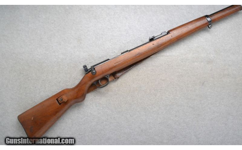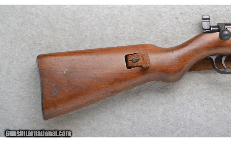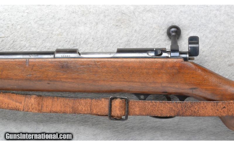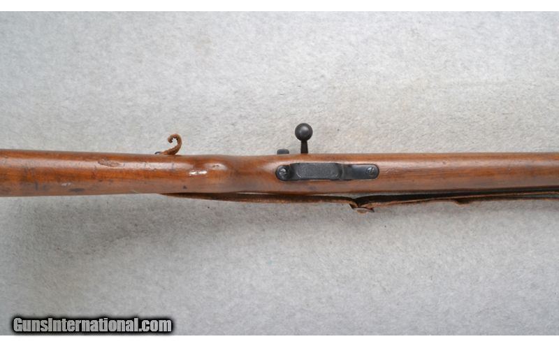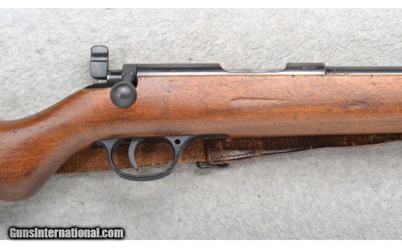 Description: This Walther Sportmodell is a single shot right hand bolt action rifle in 5.4mm Cal. It has a 25.75 inch barrel. A raised blade front sight and a numbered sliding adjustable notch middle sight. The butt stock is a smooth grip walnut pistol grip. The forearm is a smooth grip two piece walnut with a barrel band and steel cap. SOLD Chambers: Single Shot. Metal Condition: Good. Some light wear and minor freckling. Wood Condition: Fair. Many handling marks. Bore Condition: Excellent. Barrels: 25.75 inch. Stock Dimensions: LOP 12 3/4 inches. Fore End: Smooth grip two piece walnut with a barrel band and steel cap. Butt Pad: Smooth steel plate. Weight: 8 lb. 6 oz. Sights: Raised blade front. Numbered sliding adjustable notch middle. Item Location: Richfield, WI |