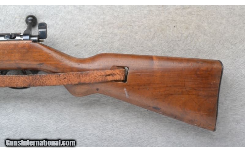Description: This Walther Sportmodell is a single shot right hand bolt action rifle in 5.4mm Cal. It has a 25.75 inch barrel. A raised blade front sight and a numbered sliding adjustable notch middle sight. The butt stock is a smooth grip walnut pistol grip. The forearm is a smooth grip two piece walnut with a barrel band and steel cap. SOLD Chambers: Single Shot. Metal Condition: Good. Some light wear and minor freckling. Wood Condition: Fair. Many handling marks. Bore Condition: Excellent. Barrels: 25.75 inch. Stock Dimensions: LOP 12 3/4 inches. Fore End: Smooth grip two piece walnut with a barrel band and steel cap. Butt Pad: Smooth steel plate. Weight: 8 lb. 6 oz. Sights: Raised blade front. Numbered sliding adjustable notch middle. Item Location: Richfield, WI |