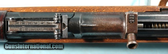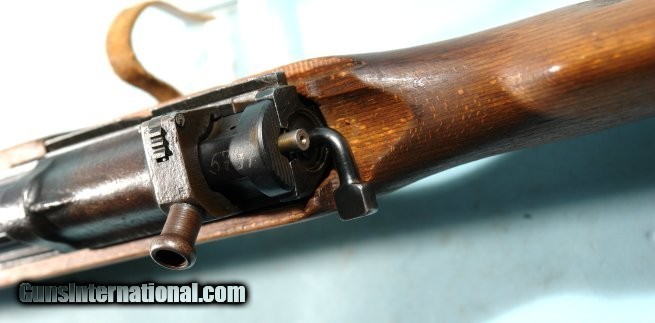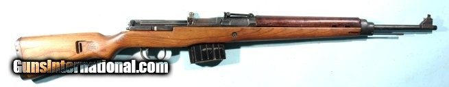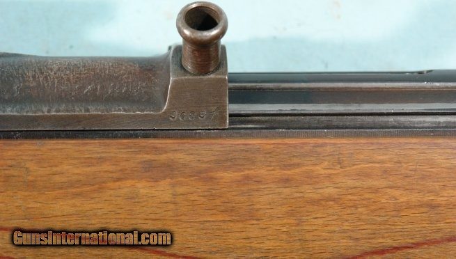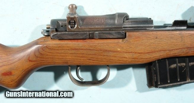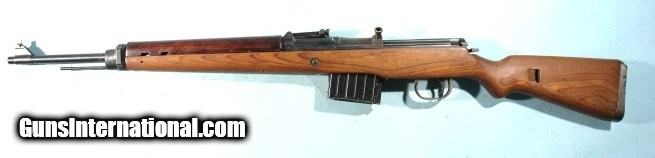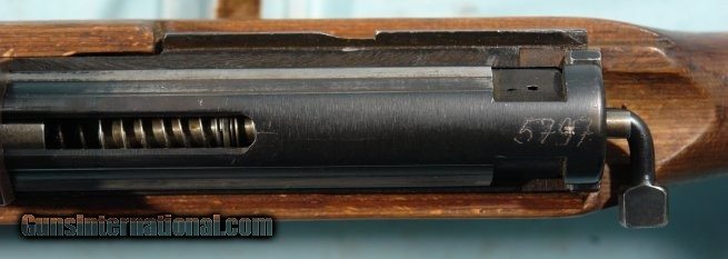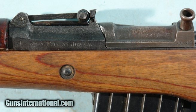 Description: WW2 GERMAN WALTHER G-43 OR G43 DUV/44 SEMI-AUTO 8MM INFANTRY RIFLE. Extra nice looking G-43 made in 1944. All original with matching numbers in the 3xxx range except bolt which is a near 3xxx range field replacement. Excellent marking with receiver stamped with German Army Ordnance “EAGLE/SWASTIKA” and “EAGLE/214” Waffenampt as well as “G.43 duv . 44.”.Stock with two excellent Ordnance Waffenampt stamps on right side of butt. Excellent overall with original military blue with light wear and the original stock and composition hand guard with the original finish as well. Very tiny chip of metal (late war casting flaw) out of rear of bolt housing. Working order and very good bore. SOLD Curio/Relic: Yes Rifle Caliber: 7.92x57mm Mauser |