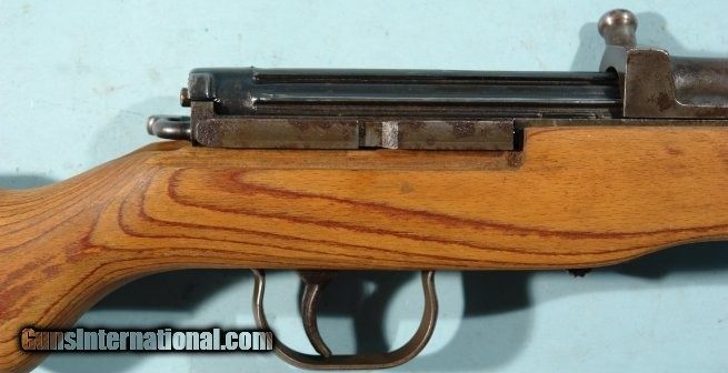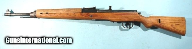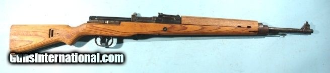 Description: WW2 GERMAN WALTHER K43 OR K-43 AC45 or AC/45 CODE SEMI-AUTO 8MM MAUSER RIFLE. Serial number on receiver matches to bolt latch along with 'WAa359" code as well as other parts. Replacement laminate stock with no markings. Missing buttplate, magazine and front sight hood but has cleaning rod. Has original scope rail on right side. Works as it should. Fair bore with deep rifling. The German "Garand" that was in too few in numbers and too late in the war to make a difference. This one does not have the bolt hold latch that makes it very late 1944/45 as a it was one of the process steps dropped in order to expedite manufacure(hence the rough cast appearance to outside of receiver. See "Hitler's Garands…" by Weaver(Collector Grade Publications). SOLD Curio/Relic: Yes Rifle Caliber: 7.62x54mmR |