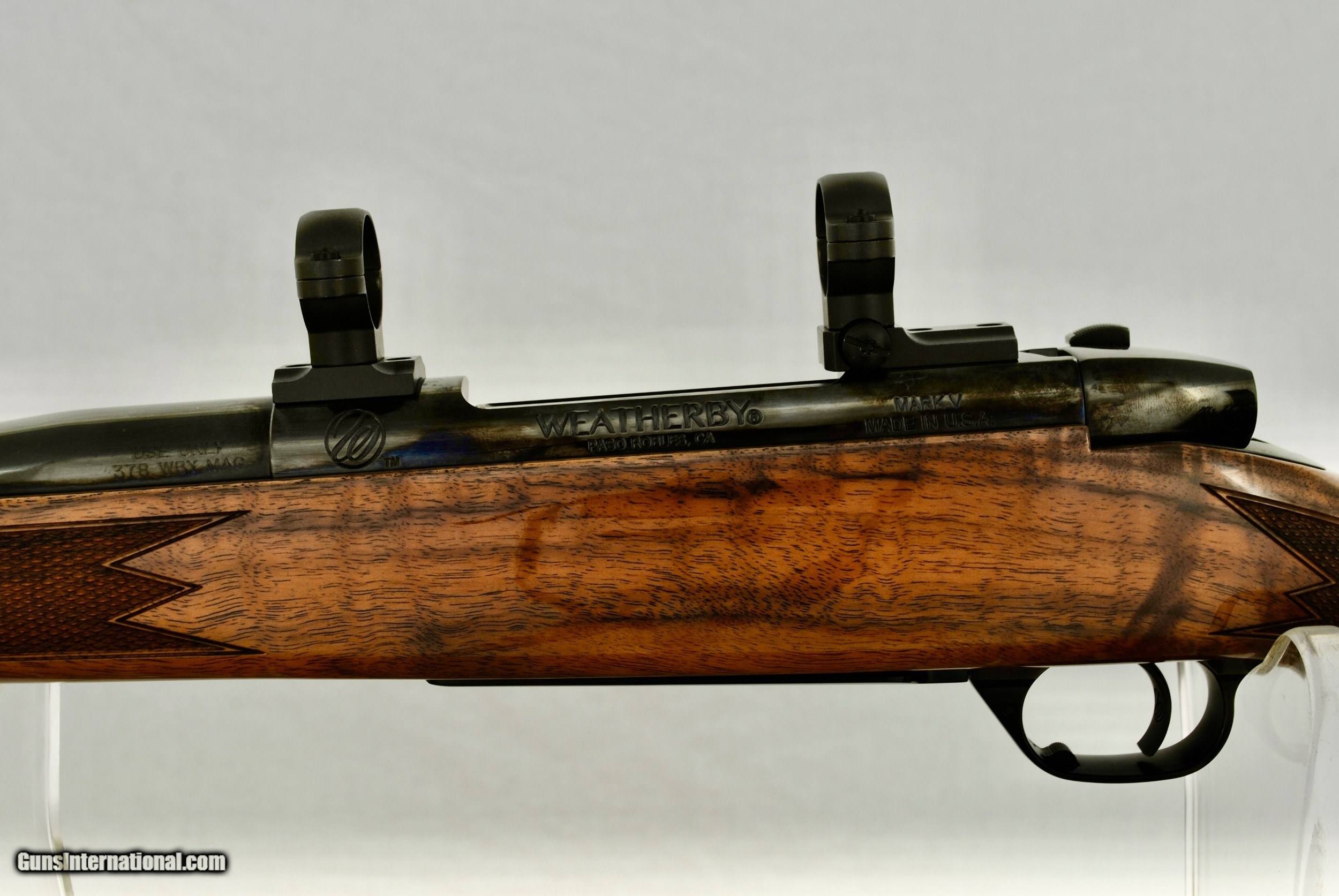 Description: Weatherby Mark V Deluxe in 378 Weatherby in mint condition. 2018 Paso Robles, CA production. with Factory box numbered to the gun. High polish blue. Pachmayr basketweave recoil pad. Rosewood forend tip and grip cap. Barrel is 28" to the end of the threaded muzzle break. Lyman rings. Credit cards are OK with no additional fee. Insured ground shipping is $60. SOLD Rifle Caliber: .378 Weatherby Magnum |
