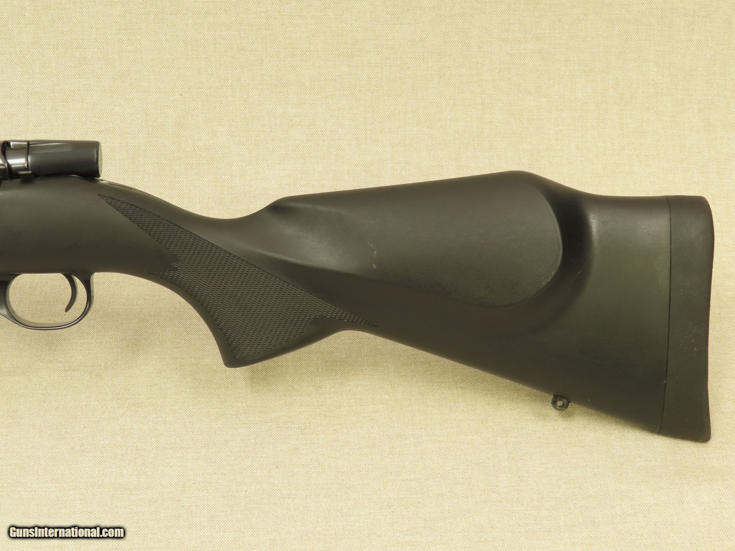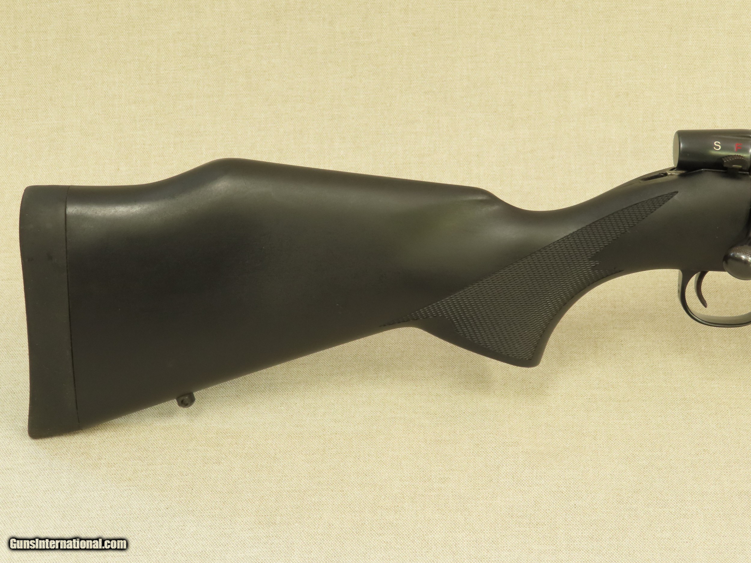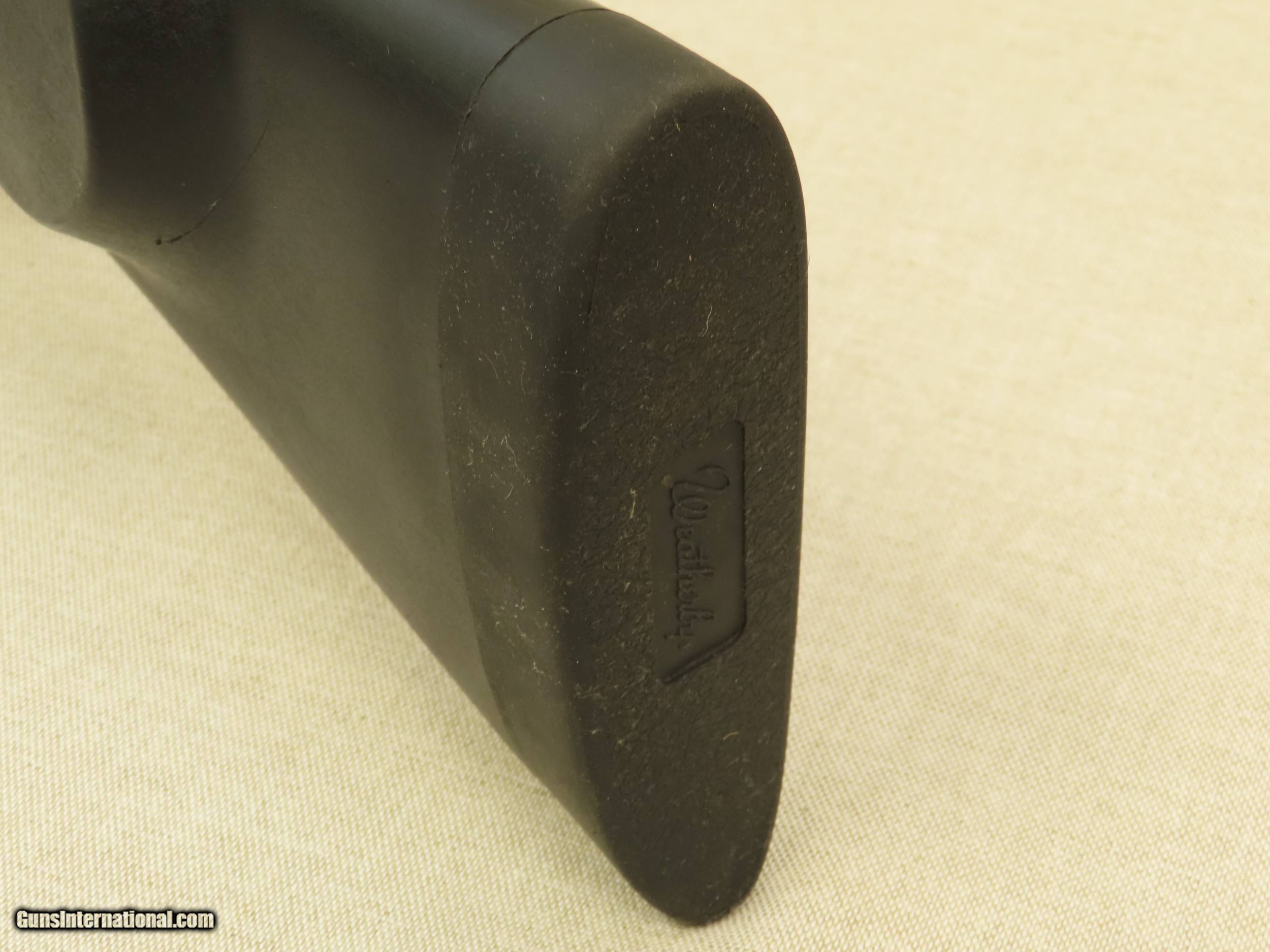 Description: If you have been looking for a new do-it-all type of rifle this Weatherby Vanguard chambered in .257 Weatherby magnum would be an excellent choice. These rifles are guaranteed to shoot 1 MOA or better with factory ammunition and they are very well made and reliable. This particular rifle has been very lightly used and looks good overall, but was stored in a gun room that had some humidity problems causing little spots of light surface rust that have since been removed. As you can see from the pictures, the tiny dark speckling in the factory blue finish is very hard to see, and only visible under close inspection. The bore is in perfect condition, free from any visible imperfections, pitting, or erosion. The rifling still looks like-new and shows sharp lands and grooves throughout. The factory black synthetic stock is in excellent condition and comes with a factory installed recoil pad and sling swivel studs. The length of pull on this rifle is just under 13.5" inches to the end of the pad. The action on this Weatherby is superb, it is slick and precise when worked and locks up tight with no wiggle. All of the controls on this rifle are in perfect working order, just like the day it left the factory. The trigger is excellent, it breaks like a glass rod with a light pull with no excessive travel or slop. This Weatherby Vanguard is factory drilled and tapped for optics and is not equipped with factory iron sights. The .257 Weatherby Magnum chambering is a flat-shooting fast cartridge that is ideal for medium game and varmints in North America. Factory loaded ammunition is widely available. This Weatherby would be an excellent addition to any sporting gun collection, and for the money is one of the best rifles available. SOLD Manufacturer: Weatherby Model: Vanguard Serial Number: VS202953 Caliber Info: .257 Weatherby Magnum Bore: Excellent Condition: Very Good |