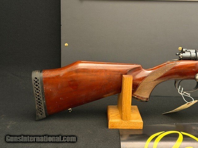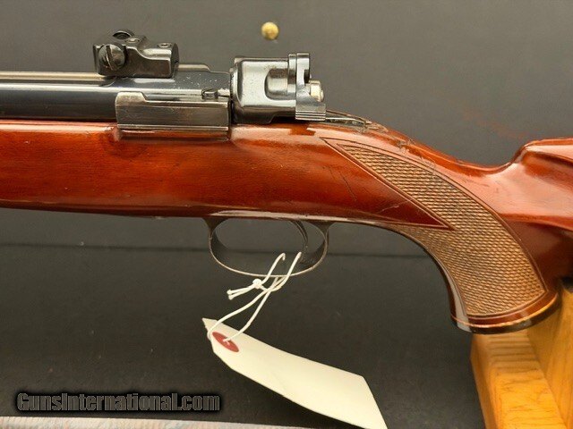 Description: ****RARE 1955 GERMAN MADE**** WEATHERBY 270 WEATHERBY MAGNUM MAUSER ACTION THIS KNOWN AS GARAGE MADE RIFLE THEY WERE PRODUCED IN THE EARLY PRODUCTION OF ROY WEATHERBYS RIFLES LIGHT BLUING FADING ON FLOOR PLATE LIGHT HANDLING MARKS I WOULD SAY VERY GOOD CONDITION FOR ITS AGE 70 YEARS OLD PLEASE SEE PICTURES. Curio/Relic: Yes Rifle Caliber: .270 Weatherby Magnum Manufacturer: WEATHERBY Model: SOUTH GATE Serial Number: 4038 Barrel Length: 24 Bore Info: STRONG Chambers: 270 WBY MAG Condition: VERY GOOD Metal Condition: GOOD Wood Condition: GOOD Bore Condition: VERY GOOD Action: MAUSER BOLT ACTION Manufacture Date: 1955 Price: $2,495.00 Shipping: $75.00 Contact Seller |