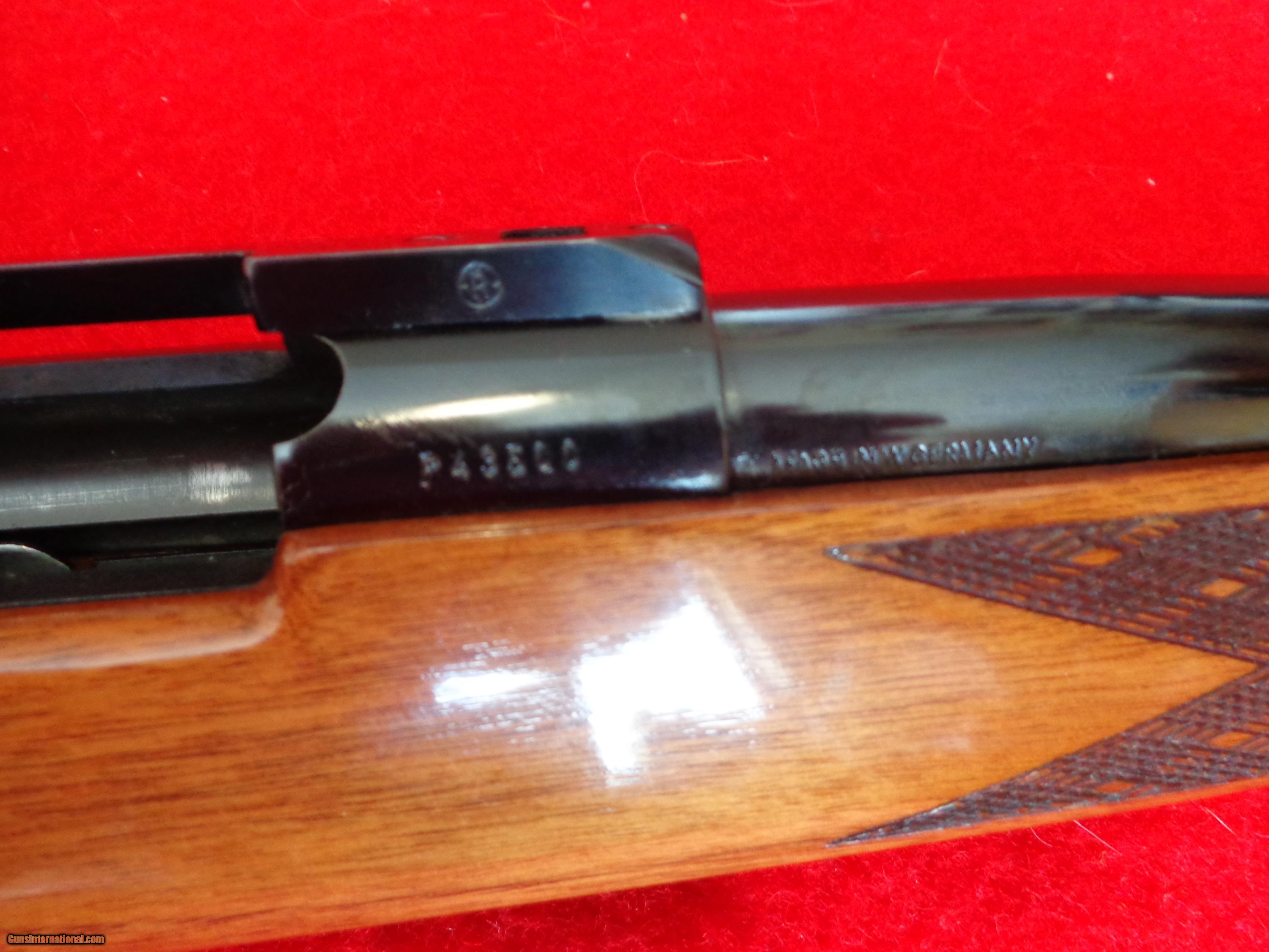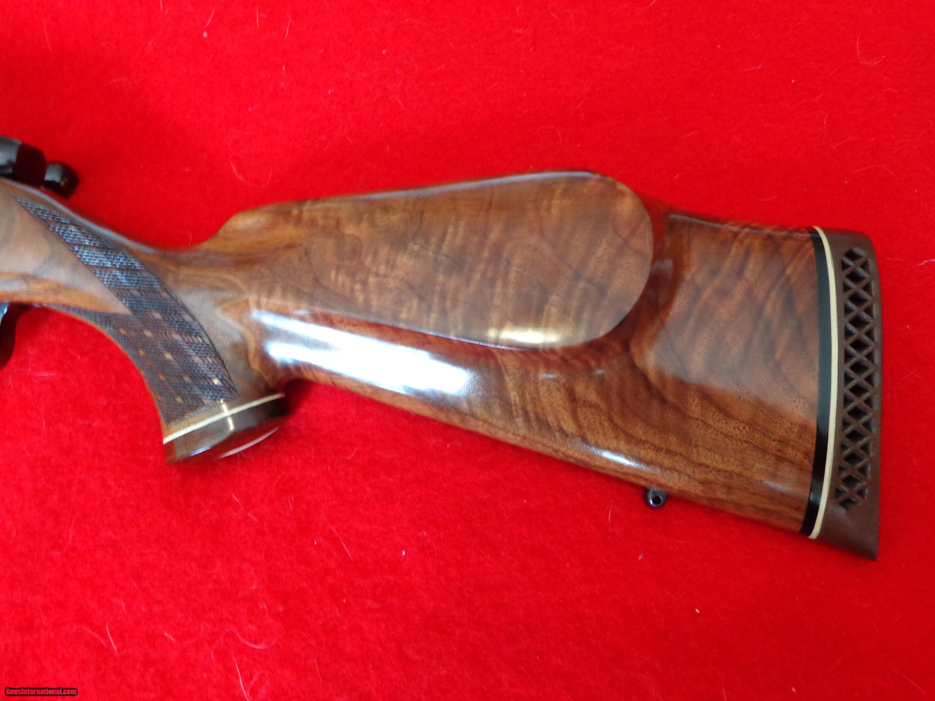 Description: Beautiful rare German 378 Weatherby magnum. 26 inch barrel with bright bluing and quite highly figured California walnut stock, all original Weatherby with no alterations. I purchased the gun from the original owner in 1995 and have only fired approximately 20 rounds during that period of time, my guess is that there has been less than 50 rounds down the barrel. I would rate the gun in at least 98% overall. SOLD Manufacturer: Weatherby Model: Mark five Serial Number: P43500 Caliber Info: 378 Weatherby Condition: 98% Metal Condition: 98% Wood Condition: 98% Bore Condition: 100% Barrels: 26inch Butt Pad: Original |