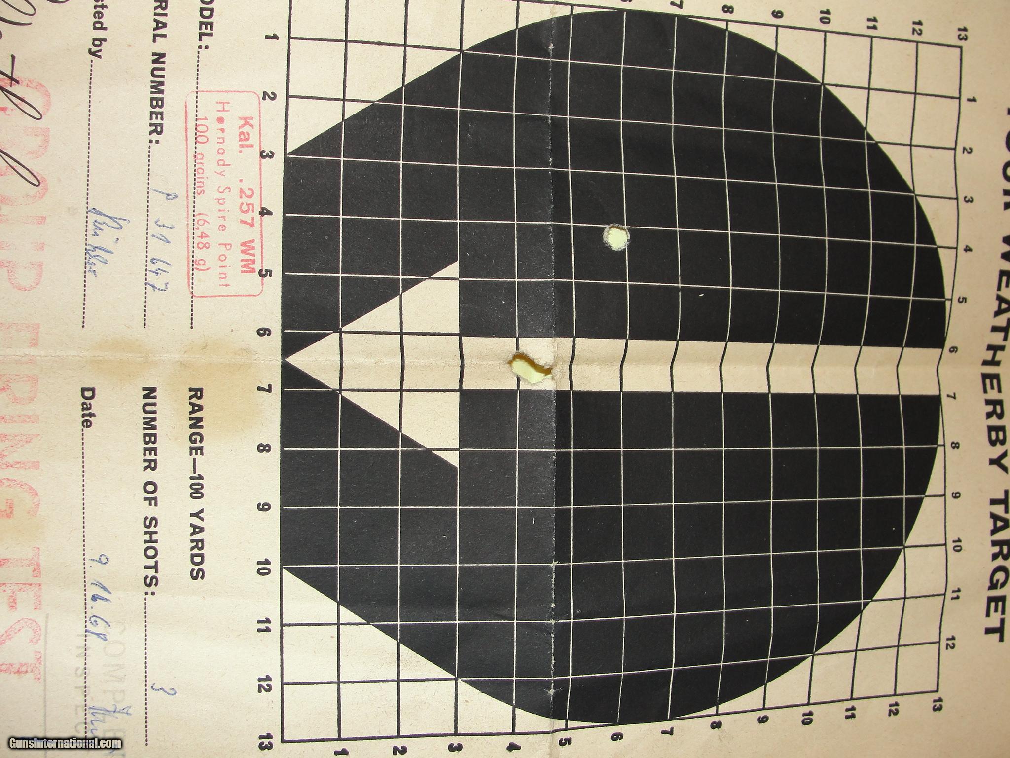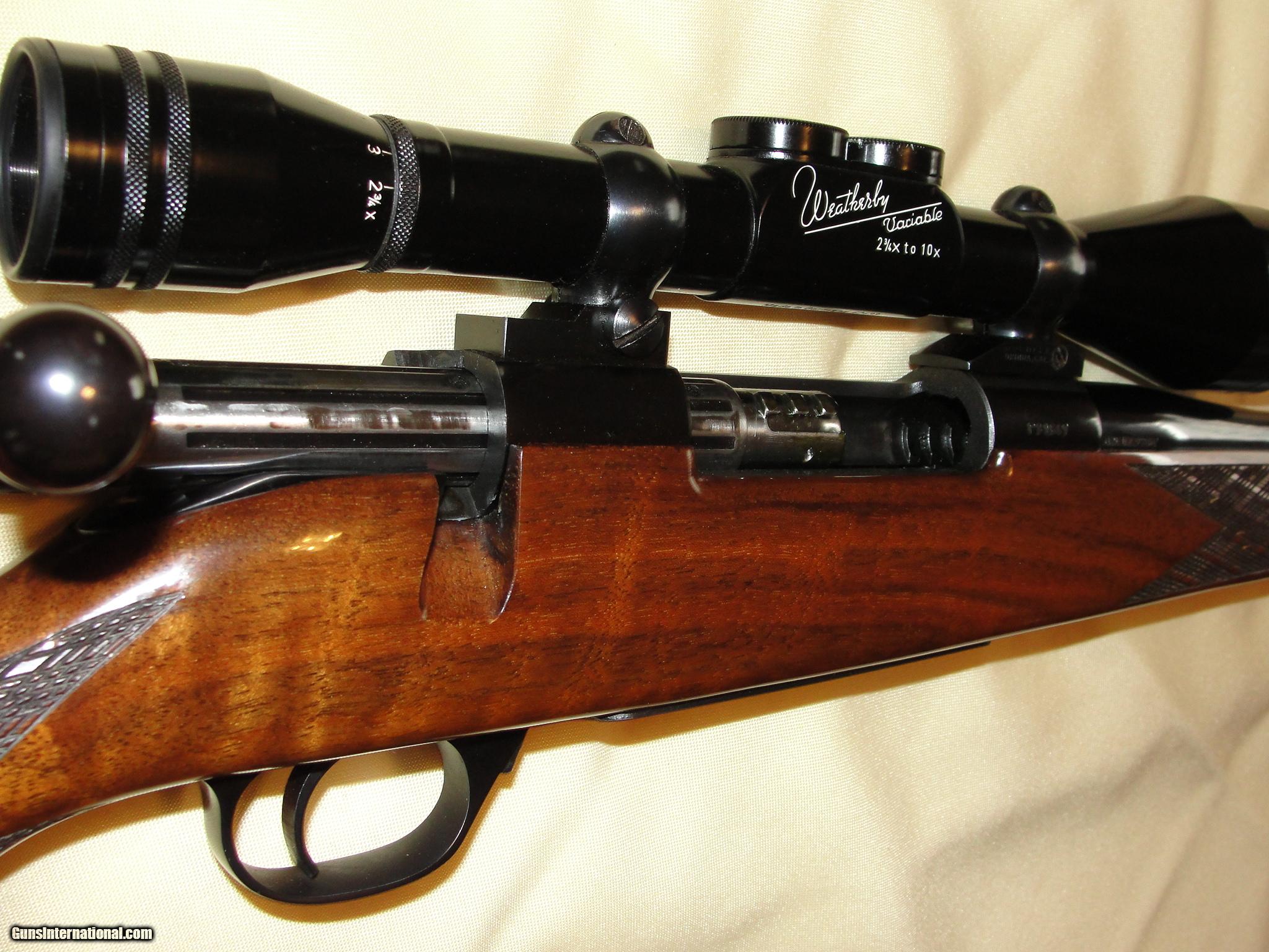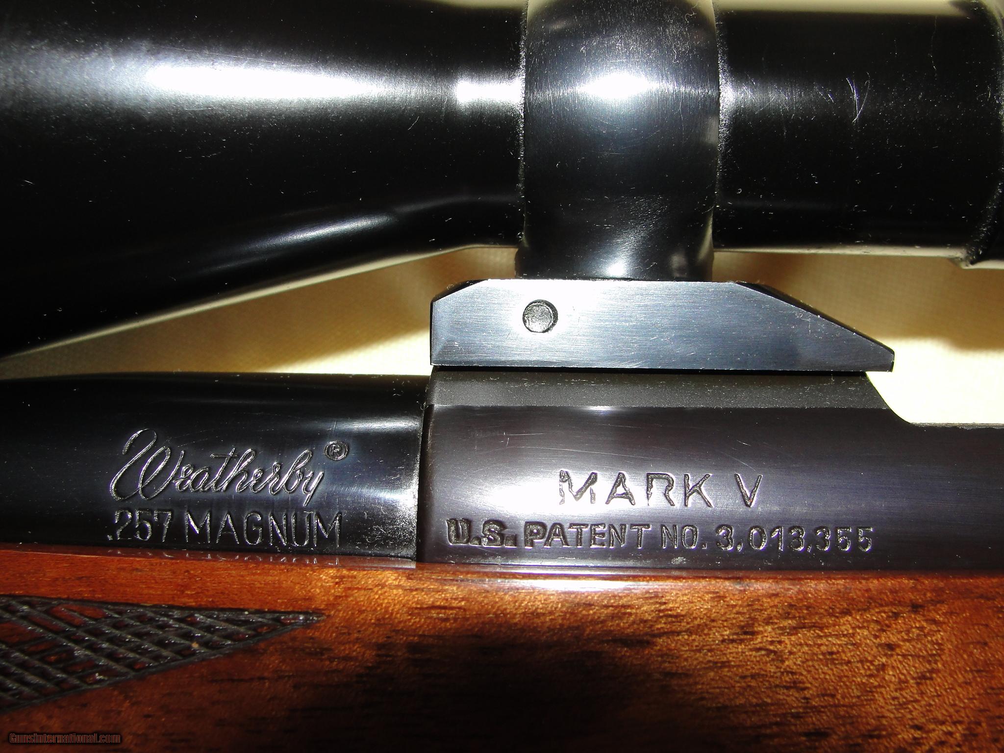 Description: German made Weatherby 257 Mag. Mark V, W/ German Weatherby Variable scope 23/4x-10x. The orig. gun box & target are included. This rifle is in excellent cond. SOLD Manufacturer: Weatherby, Made in W. Germany Model: Mark V Serial Number: P31647 Caliber Info: 257 Mag. Condition: 99% Metal Condition: 99% Wood Condition: 99% Bore Condition: 99% Barrels: 24in. Action: bolt Butt Pad: Weatherby Manufacture Date: 1968 |