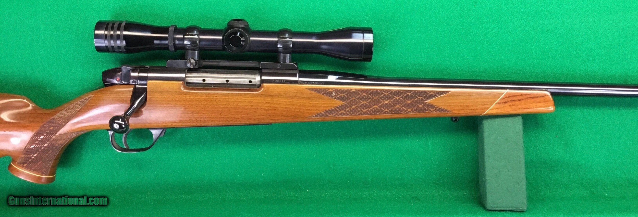 Description: On hold, awaiting payment // This German Weatherby Mk V 30-06 appears to have been a safe queen it's entire life. The sticker is still intact on the Redfield scope. Near mint condition, be the first to hunt with it or add to a collection. $1498 plus $50 insured shipping. Lengthy layaway available. No credit cards and no trades. SOLD |