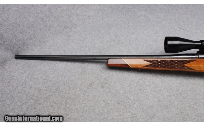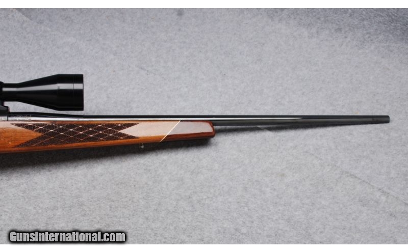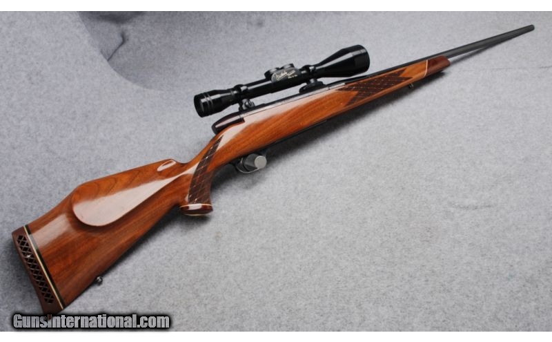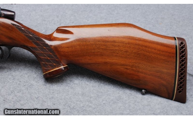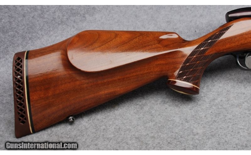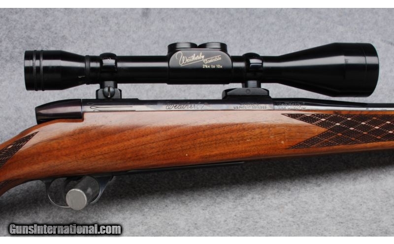 Description: This is a made in West Germany Left Handed Weatherby Mark V rifle in .300 Weatherby Magnum. The serial number dates to 1964. Metal is in Excellent condition. The bore is bright and shiny. The classic Weatherby style stock is Very Good showing some wear around the front sling swivel stud and some checking in the varnish. This rilfe is equipped with a Weatherby Variable 2 3/4-10 scope in 2 piece Redfield mounts that is included in the price of the rifle. The scope and mounts will not be removed and the rifle repriced without them. SOLD Manufacturer: 1964 Caliber Info: .300 Weatherby Magnum Metal Condition: Excellent Wood Condition: Very Good Bore Condition: Bright and Shiny Barrels: 24 Triggers: Serrated Stock: Monte Carlo Style Walnut with Skip Line Checkering and Contrasting Fore End and Pistol Grip Caps Stock Dimensions: LOP 13 1/4 Butt Pad: Weatherby Ventilated Rubber Sights: Weatherby Variable 2 3/4-10 Scope in 2 Piece Redfield Mounts Extras: Left Handed Item Location: Reno, NV |