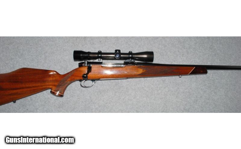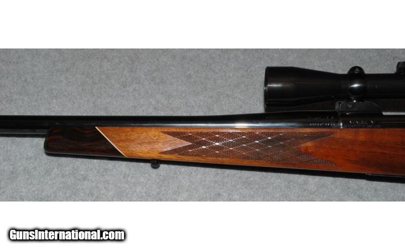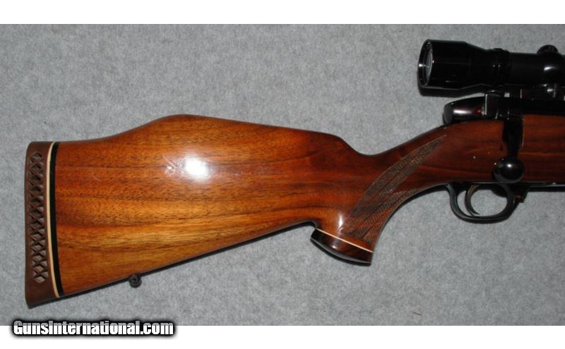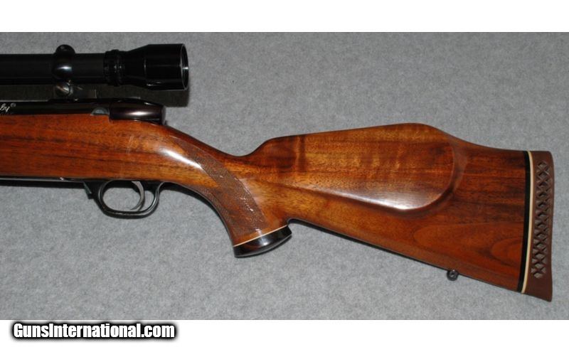 Description: SOLD Manufacturer: German made Mark V Caliber Info: 300 WBY MAG Metal Condition: Very Good Wood Condition: Slight handling marks small indentations on the toe. Bore Condition: Very good, sharp and bright Barrels: 24 Triggers: Thin grooved trigger Stock: Walnut Stock Dimensions: LOP 13 1/4 inches. Fore End: Rosewood cap and tip. Butt Pad: Factory black rubber plate Weight: 9 Lbs. Sights: Bosch and Lomb Item Location: Lacey, WA |
