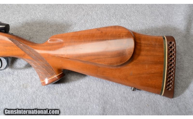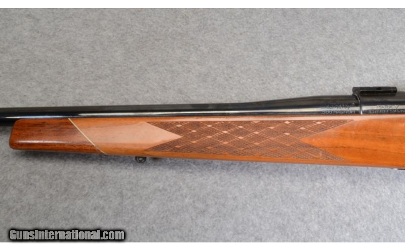 Description: A nice old Weatherby Mark V bolt action rifle in .300 Wby Mag. This one has been on a fewhunts already, and shows some dings and scratches, so dont be afraid to use this one. SOLD Caliber Info: .300 Wby. Mag. Metal Condition: Original finish thin at barrel end as well as bolt handle. Light handling and use marks. Wood Condition: Numerous handling marks, scratches and dings Bore Condition: Bright with sharp lands. Barrels: 24 Triggers: Factory trigger Stock: Walnut monte carlo stock with checkering Stock Dimensions: 13 1/4 " LOP Fore End: Walnut checkerd forearm Butt Pad: Weatherby Brown Butt Pad Weight: 7.90 lbs Sights: Scope bases Item Location: Woodbury, MN |