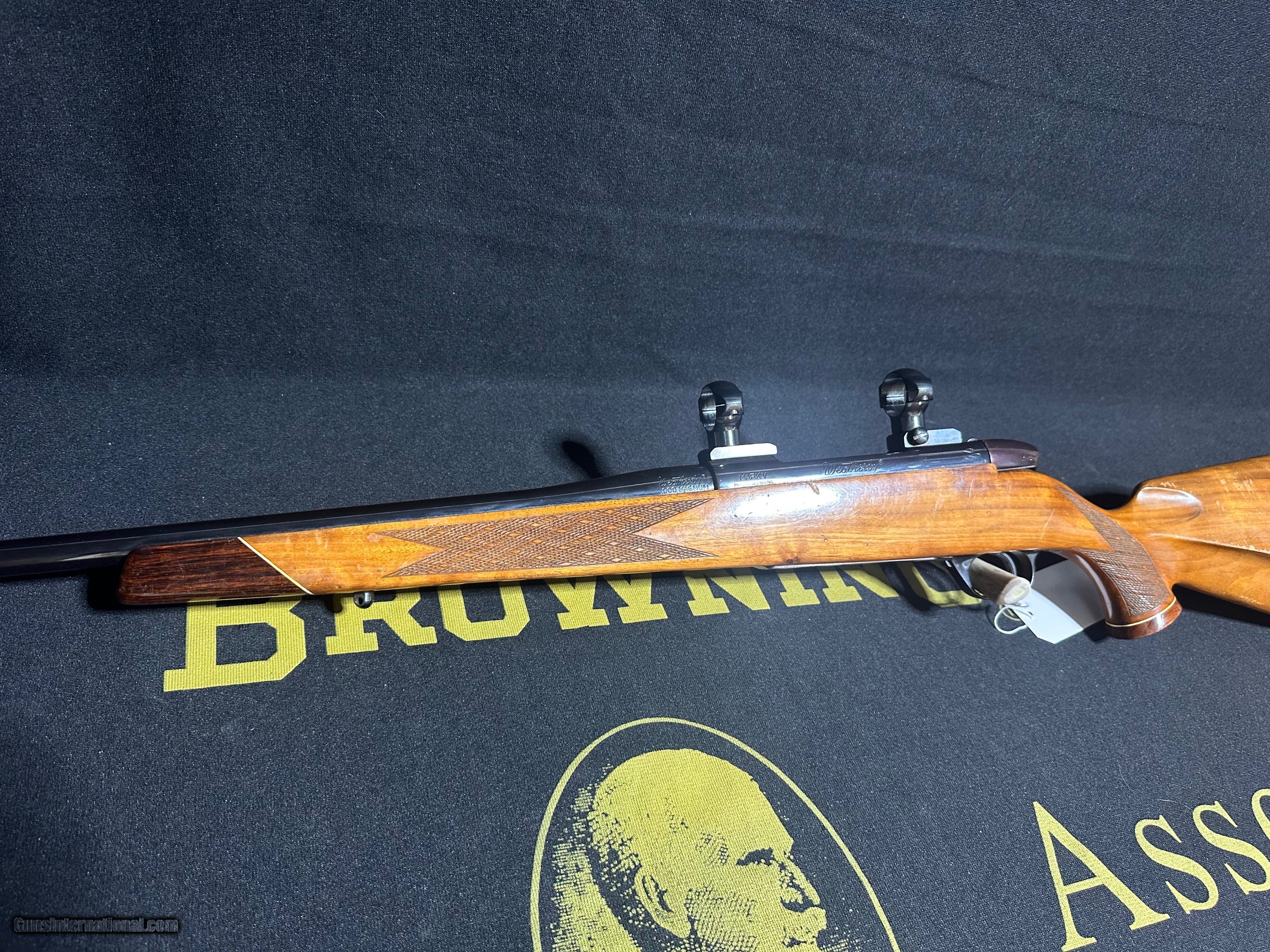 Description: Weatherby Mark V .300 wby mag West German made. Blonde wood stock with signs of hunting use. Blue barrel. Diamond enlay in pistol grip. Includes scope bases and rings. Over all a solid rifle choice for larger hunting game and would make a good addition to your collection. For more information about this firearm or for purchasing it we kindly ask that you ((( PLEASE GIVE US A CALL AT ))) 1-(479)-747-9598. We have a store front and emails may be delayed so we kindly ask that you just give us a call over the phone. PRICE - $1,100 + Shipping SOLD Rifle Caliber: .300 Weatherby Magnum Manufacturer: Weatherby Model: Mark V Serial Number: 37351 Action: Bolt Item Location: Arkansas |